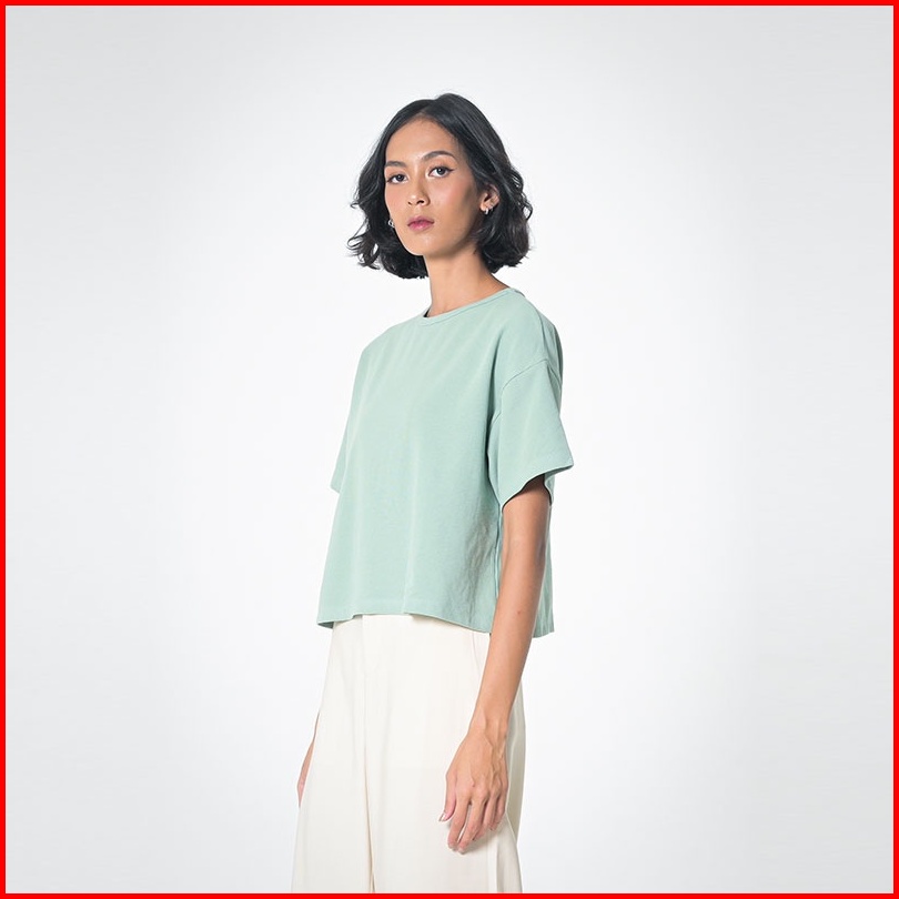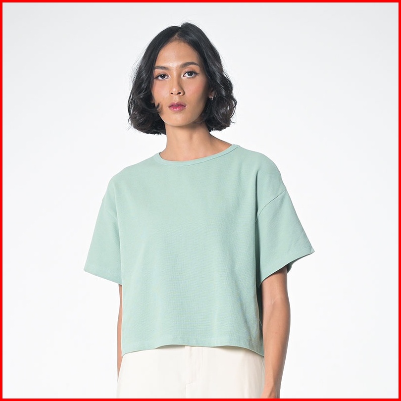 3second Kaos Mid Cropped Wanita Lengan Pendek Basic Polos Casual Timeless Outfit Hijau 090423