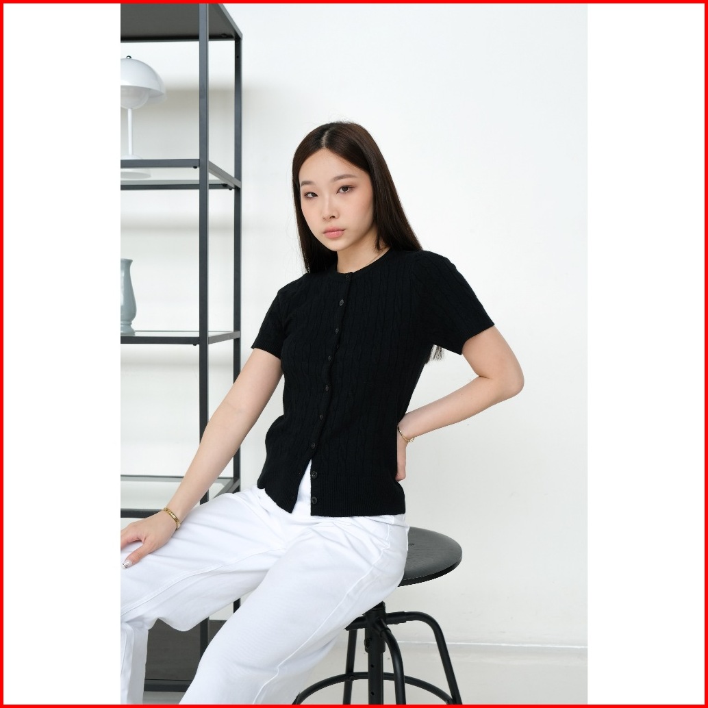 Kiyorawears - Vio Knit Short Sleeve Top Premium Cable Knit Top Blouse Wanita Atasan Rajut Wanita Kekinian Basic Top Baju
