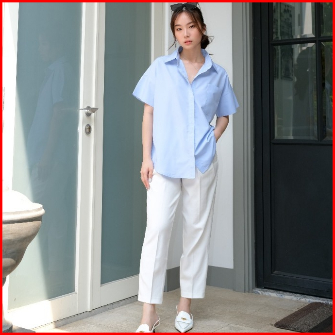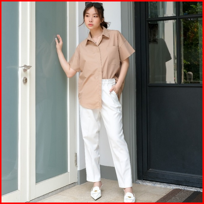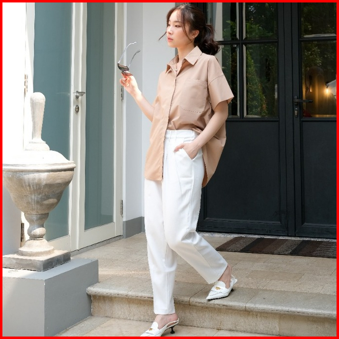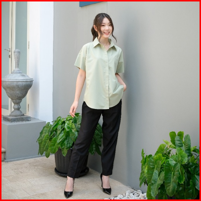 Kiyorawears - Noma Top Atasan Wanita Formal Basic Shirt Casual Blouse Kemeja Lengan Pendek Office Lady Korean Style