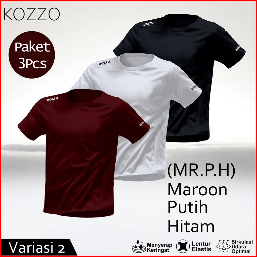 Paket 3 Pcs Kaos Baju Olahraga Pria T-shirt Jersey Lari Kozzo Bahan Dry Fit Breathable Quickdry