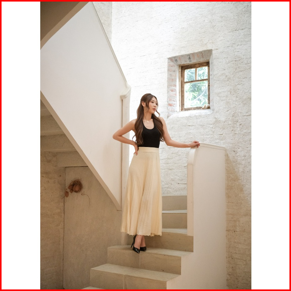 Kiyorawears - Meisy Long Narrow-pleated Skirt Rok Rempel Panjang Rok Maxi Wanita Korean Style