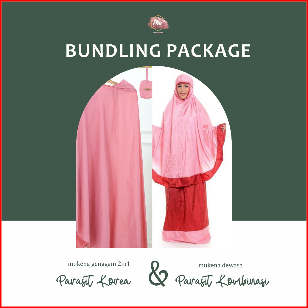 Bundling Package Mukena Genggam 2in1 Parasit Korea Dan Mukena Dewasa Parasit Kombinasi