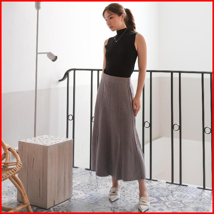 Kiyorawears - Gladys Pattern Midi Skirt Rok Midi Wanita Motif Kepang Korean Style