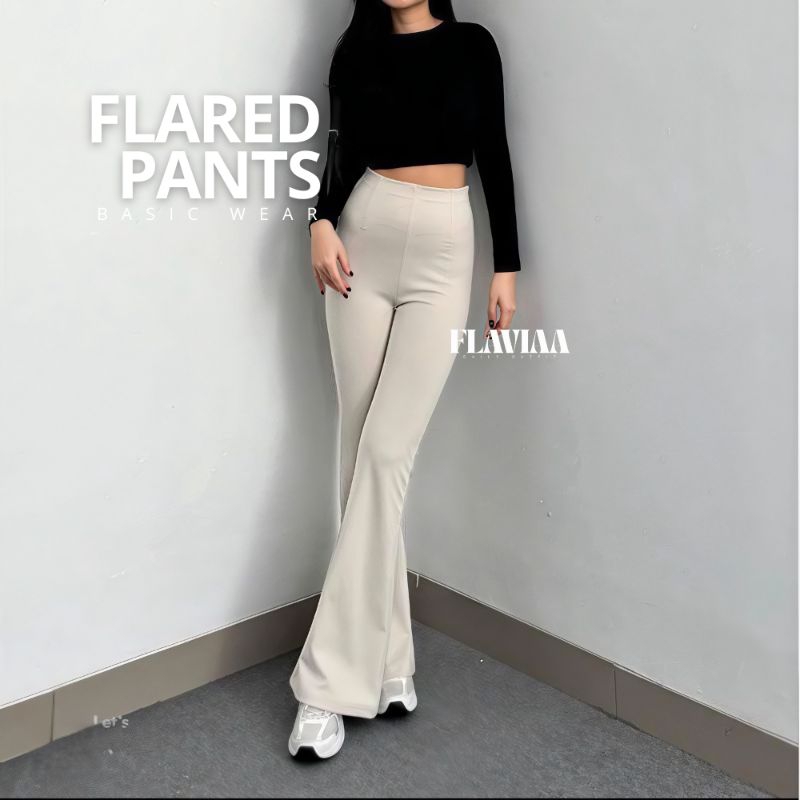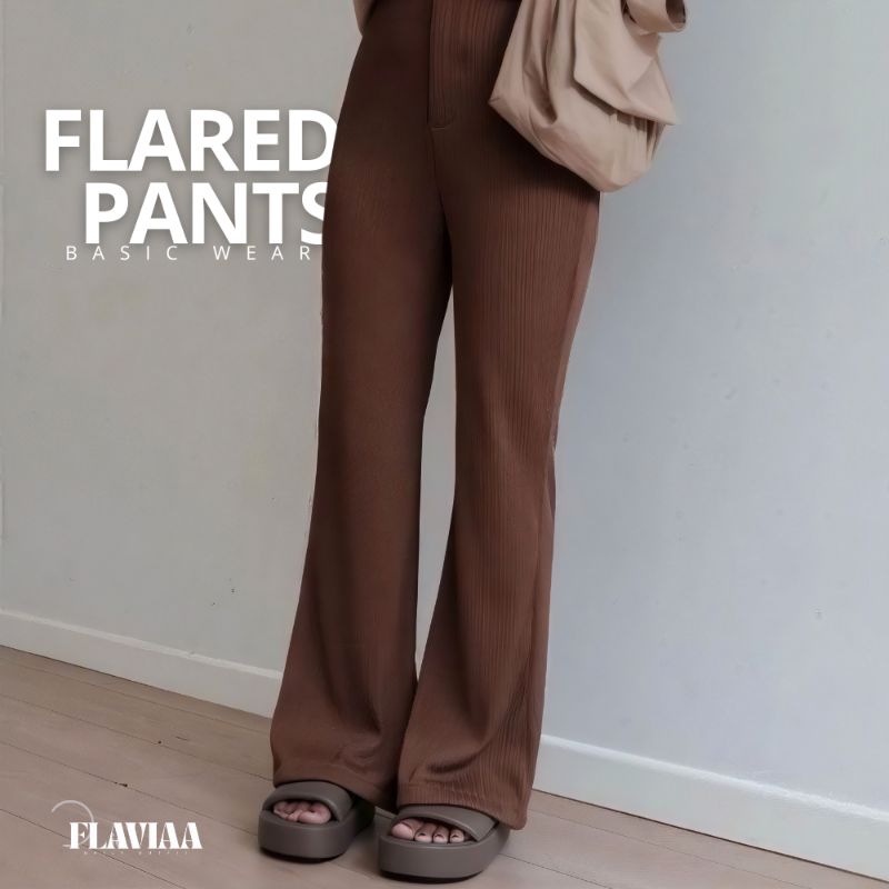 Celana Fit And Flare Pants Cutbray Knit Pinggang Highwaist Bahan Stretch Melar Kulot Cutbray Wanita