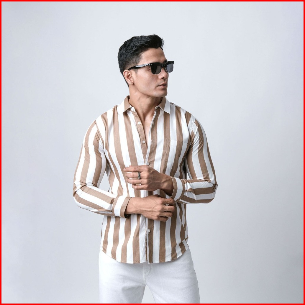 Vengoz Kemeja Pria Slim Fit - Garcia Shirt Camel Brown Ls