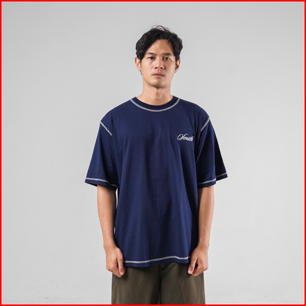 House Of Smith Kaos Oversize Pria - Overlock Stitch Oversized Tshirt Dark Blue 2 - Oversize T Shirt