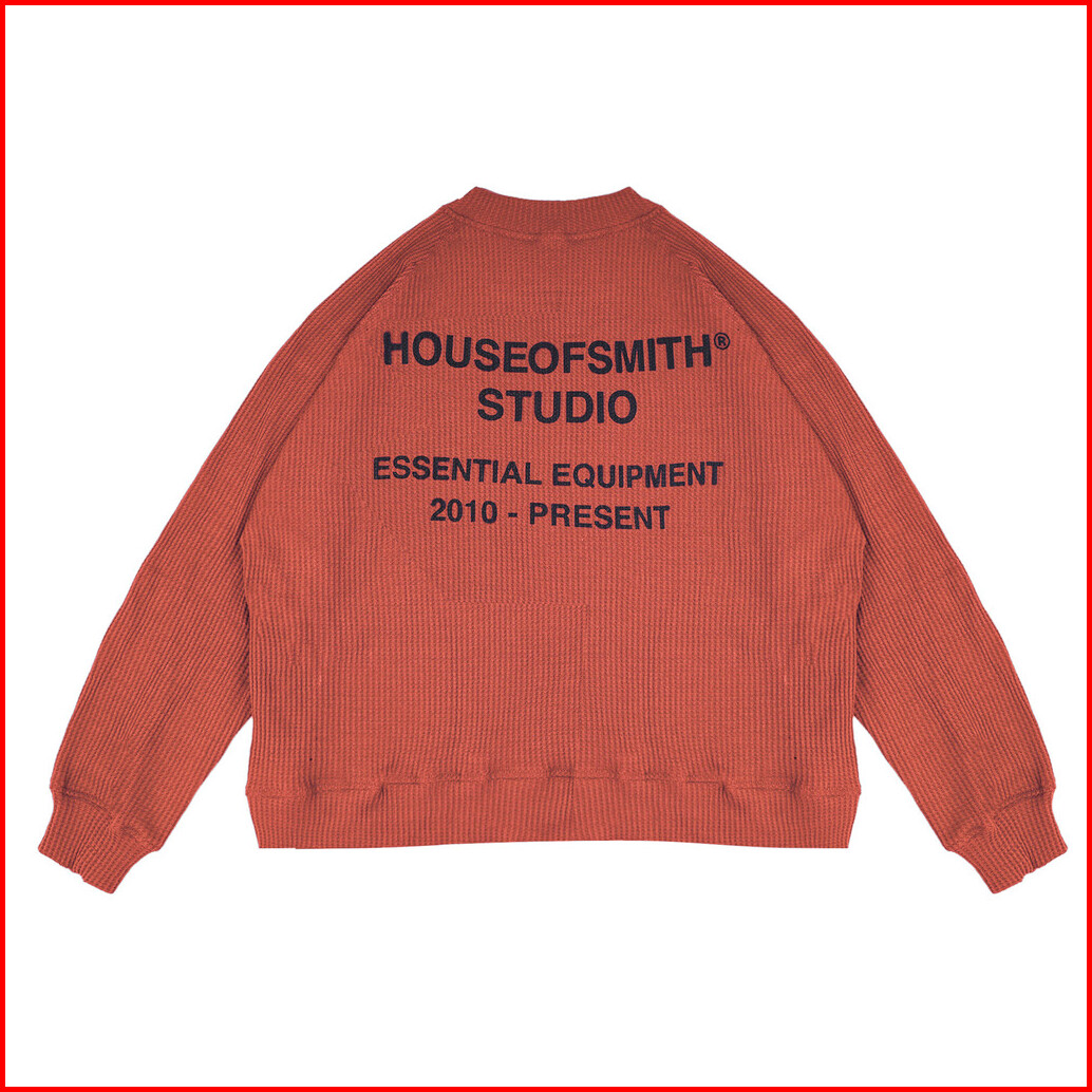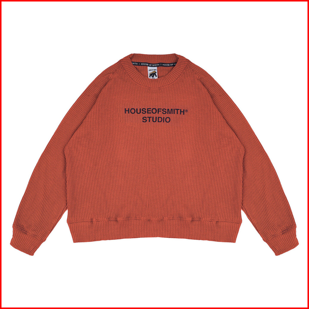 House Of Smith Sweater Crewneck Boxy Pria - Hos Studio Waffle Knit Boxy Sweater Burnt Orange