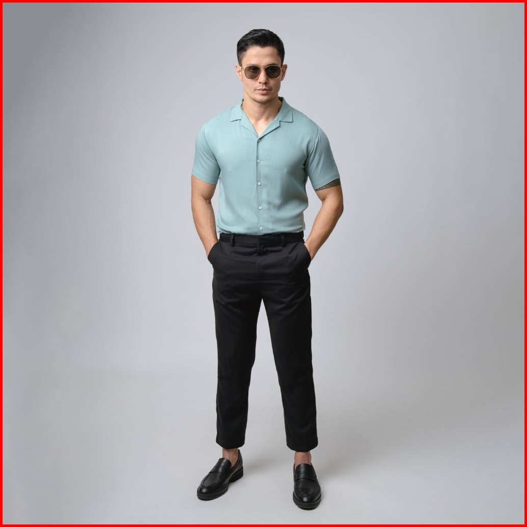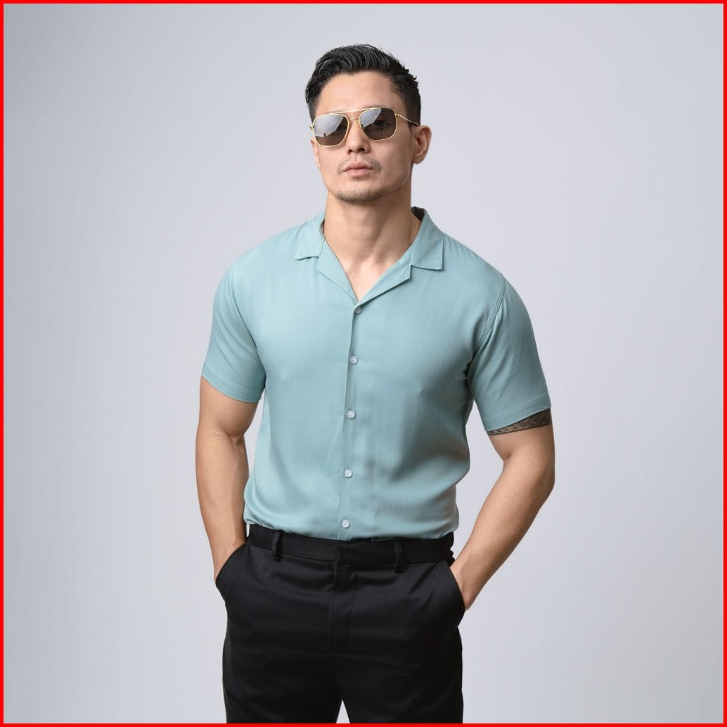 Vengoz Atasan Kemeja Pria Pendek Hawai Cuban Shirt - Viking Blue
