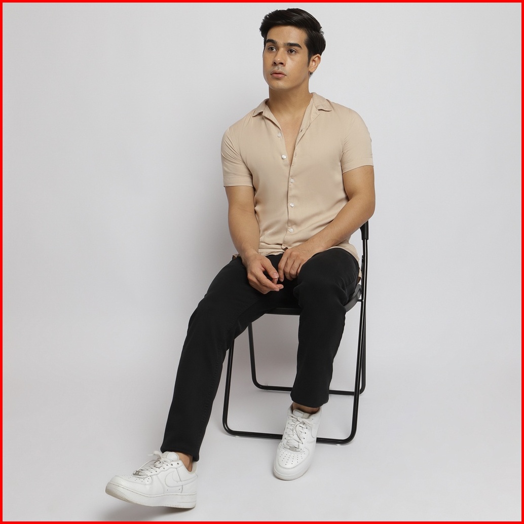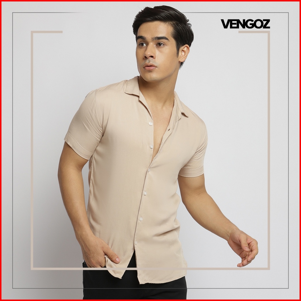 Vengoz Kemeja Pria Pendek Polos Cuban Shirt - Beige