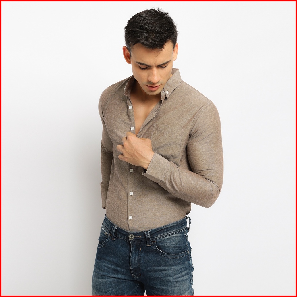 Vengoz Kemeja Oxford Pria Slim Fit - Brown