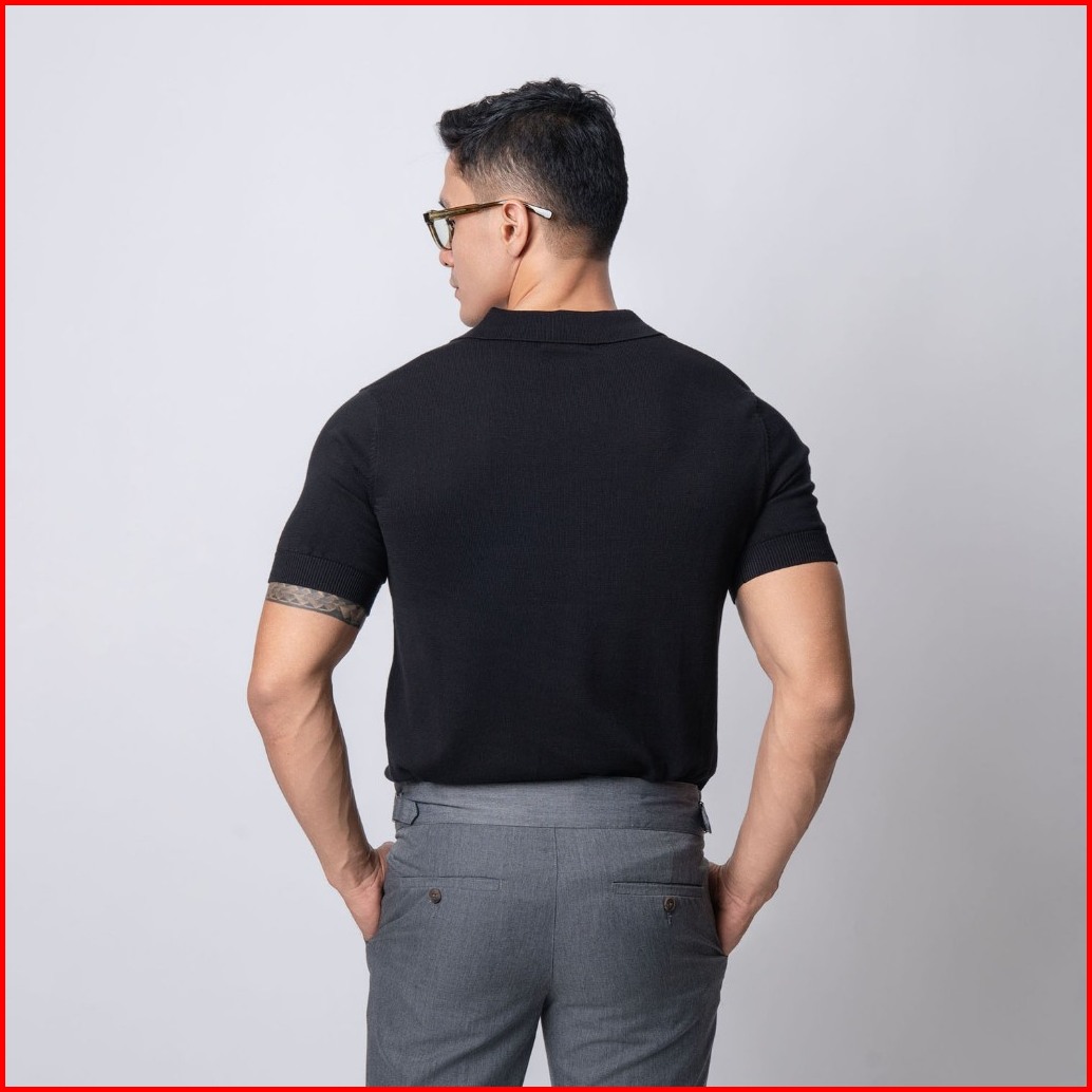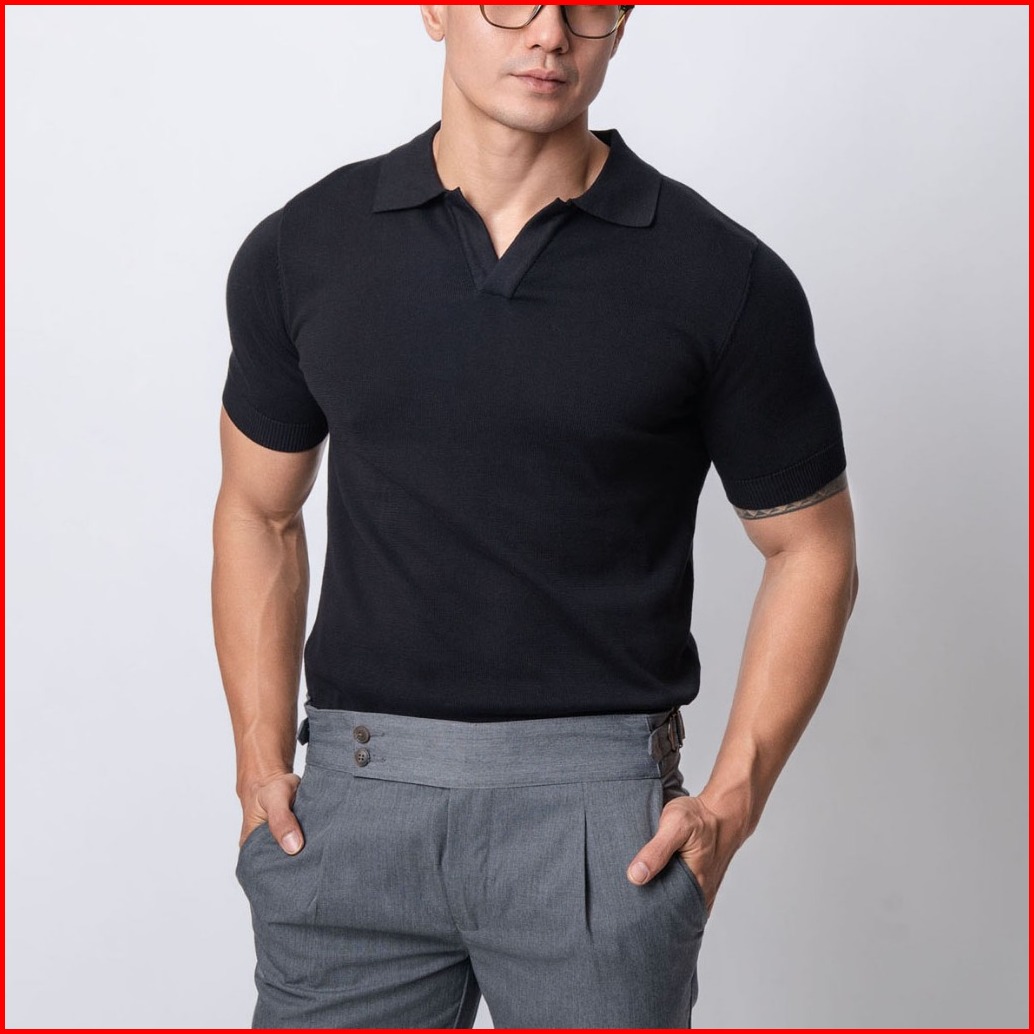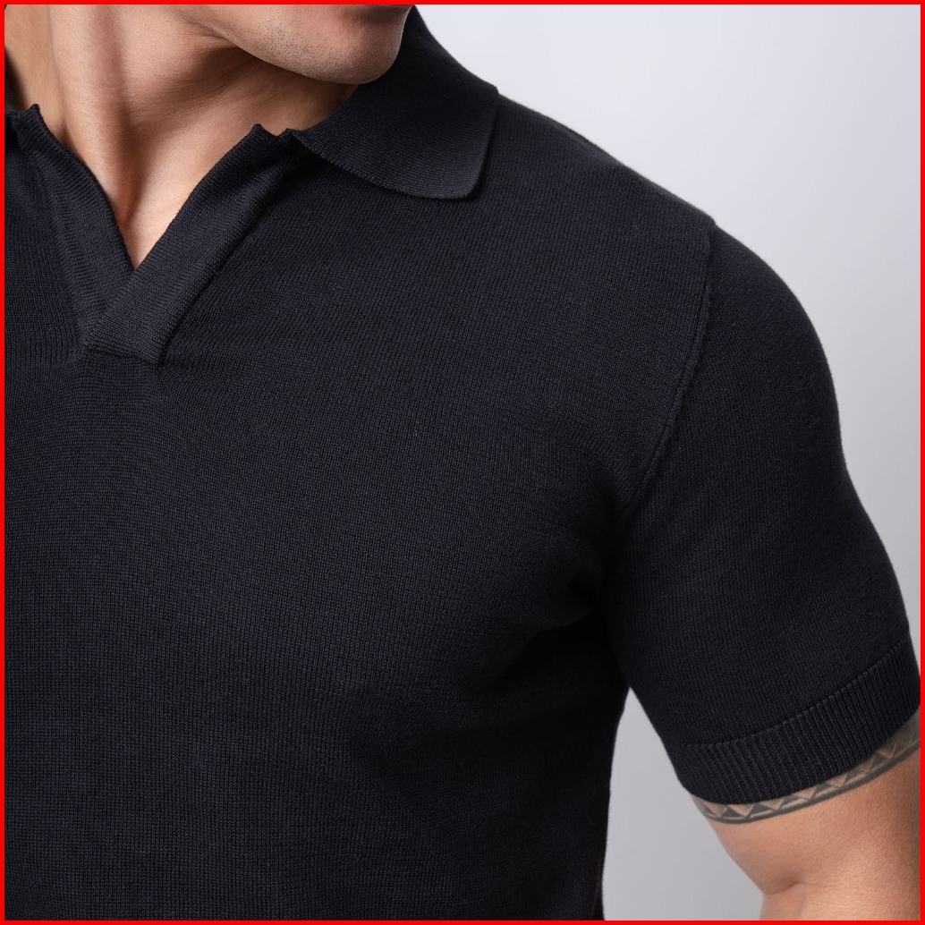 Vengoz Polo Shirt Rajut Pria - Mens Polo Shirts Basic Vneck Knitted Black
