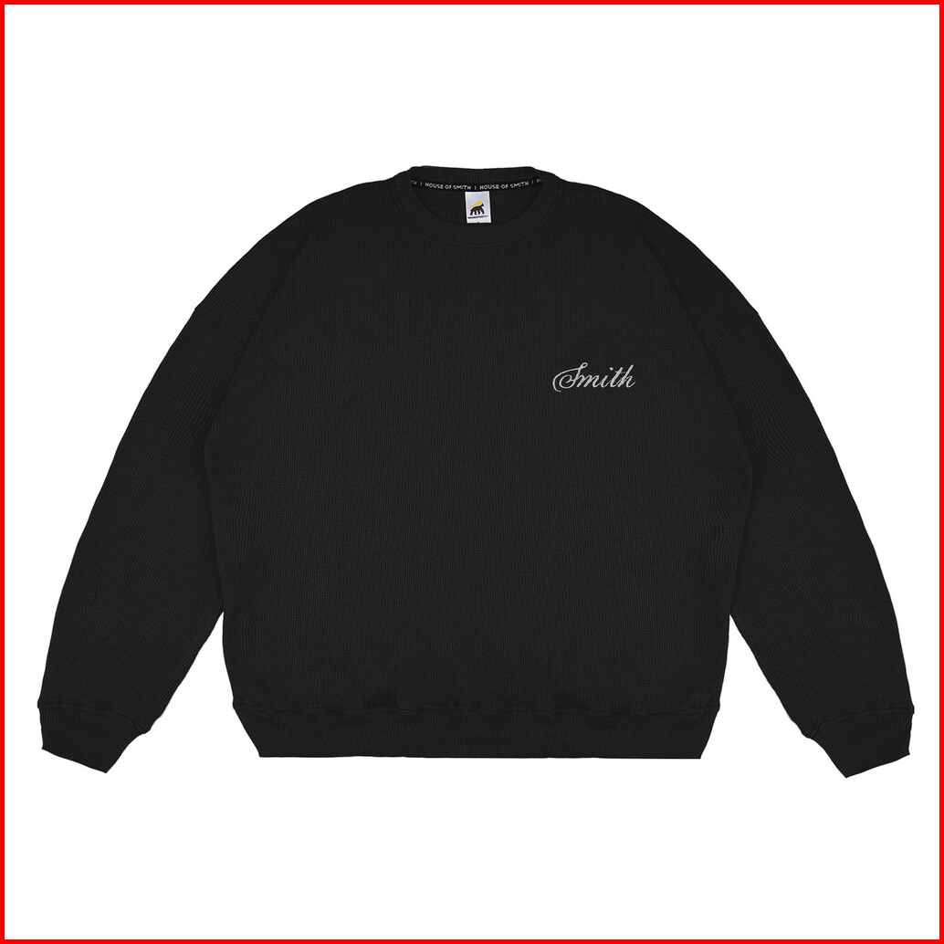 House Of Smith Sweater Crewneck Boxy Pria - Waff Boxy Crewneck Black
