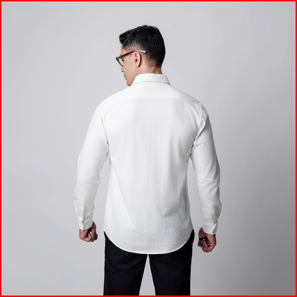 Vengoz Kemeja Jeans Pria - Mens Washed Denim Shirt Ls Off White