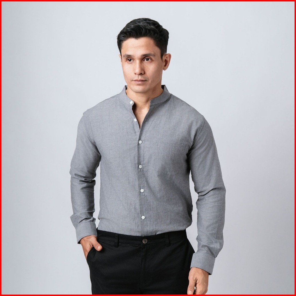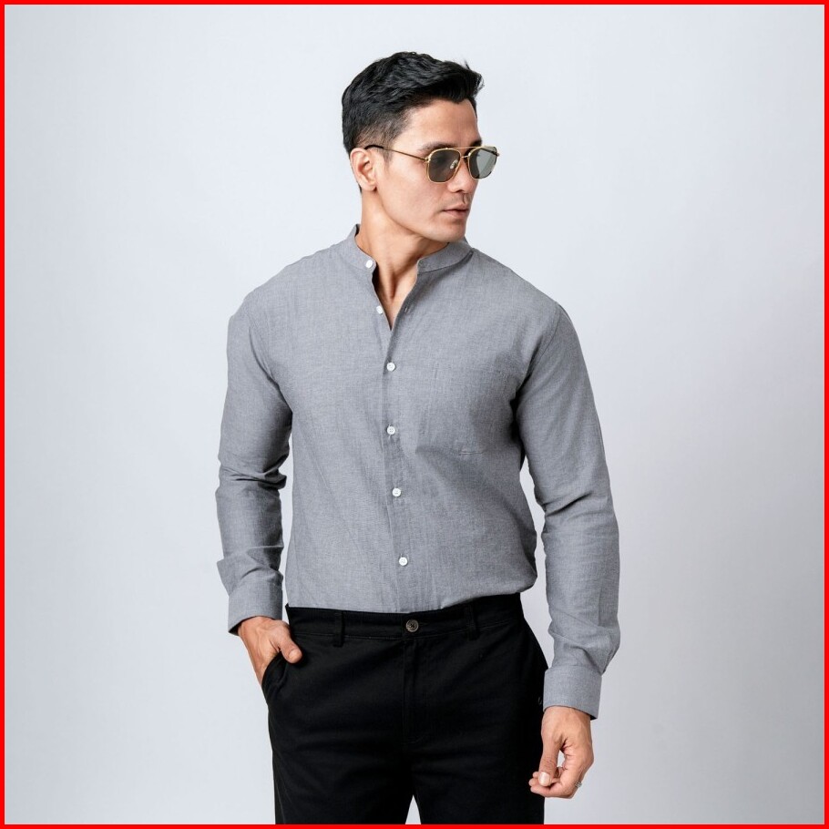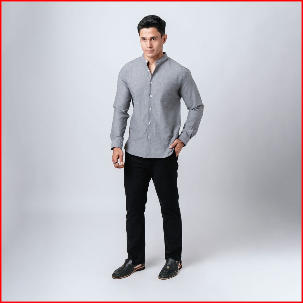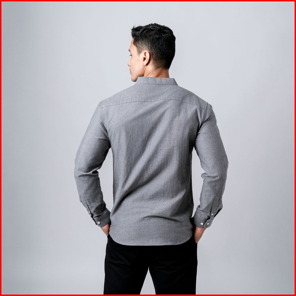 Vengoz Kemeja Oxford Panjang Shanghai Pria Slim Fit - Black Ls