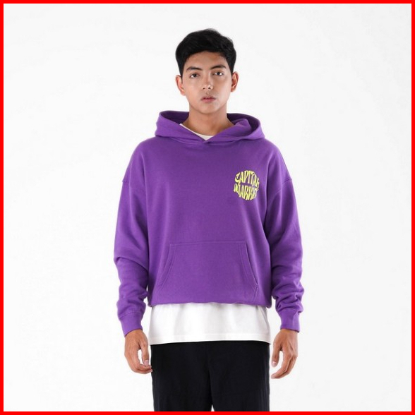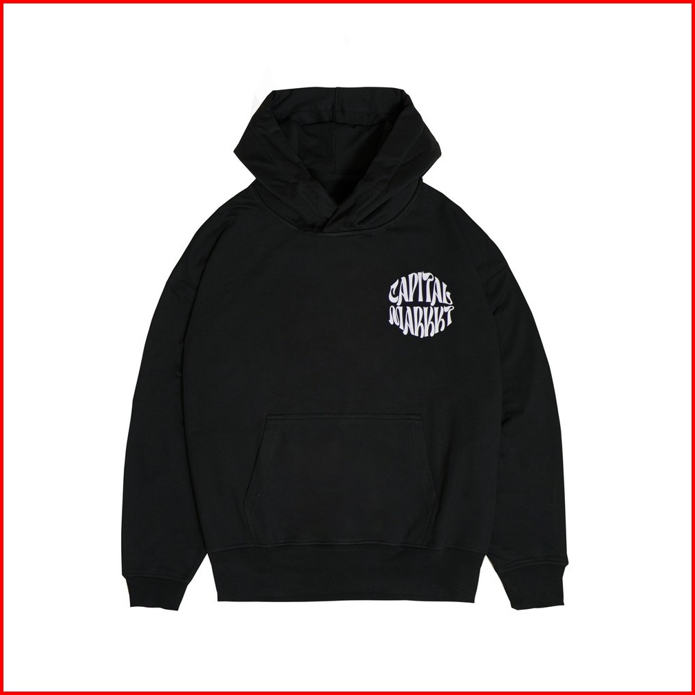 Capmart Jaket Pria Basic Hoodie Sweater Fleece Pocket Center Basket Script C141223