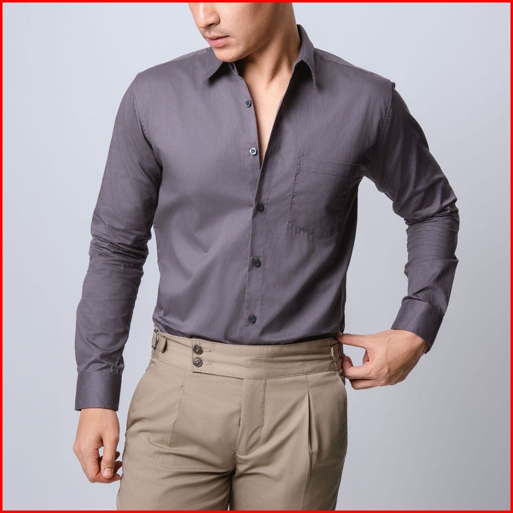 Vengoz Kemeja Pria Cotton Twill Premium - Dark Grey Ls