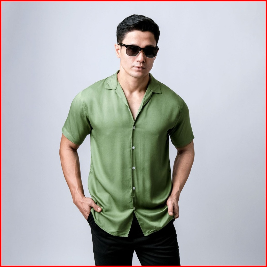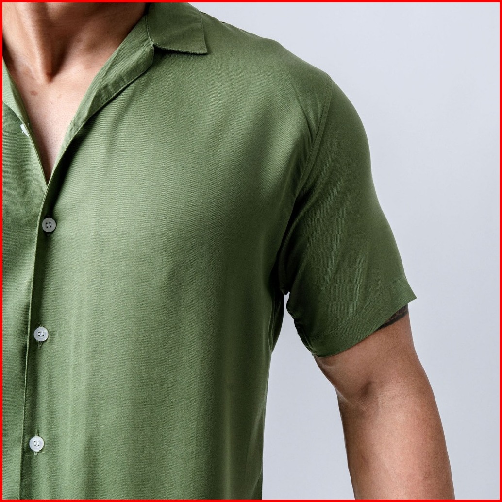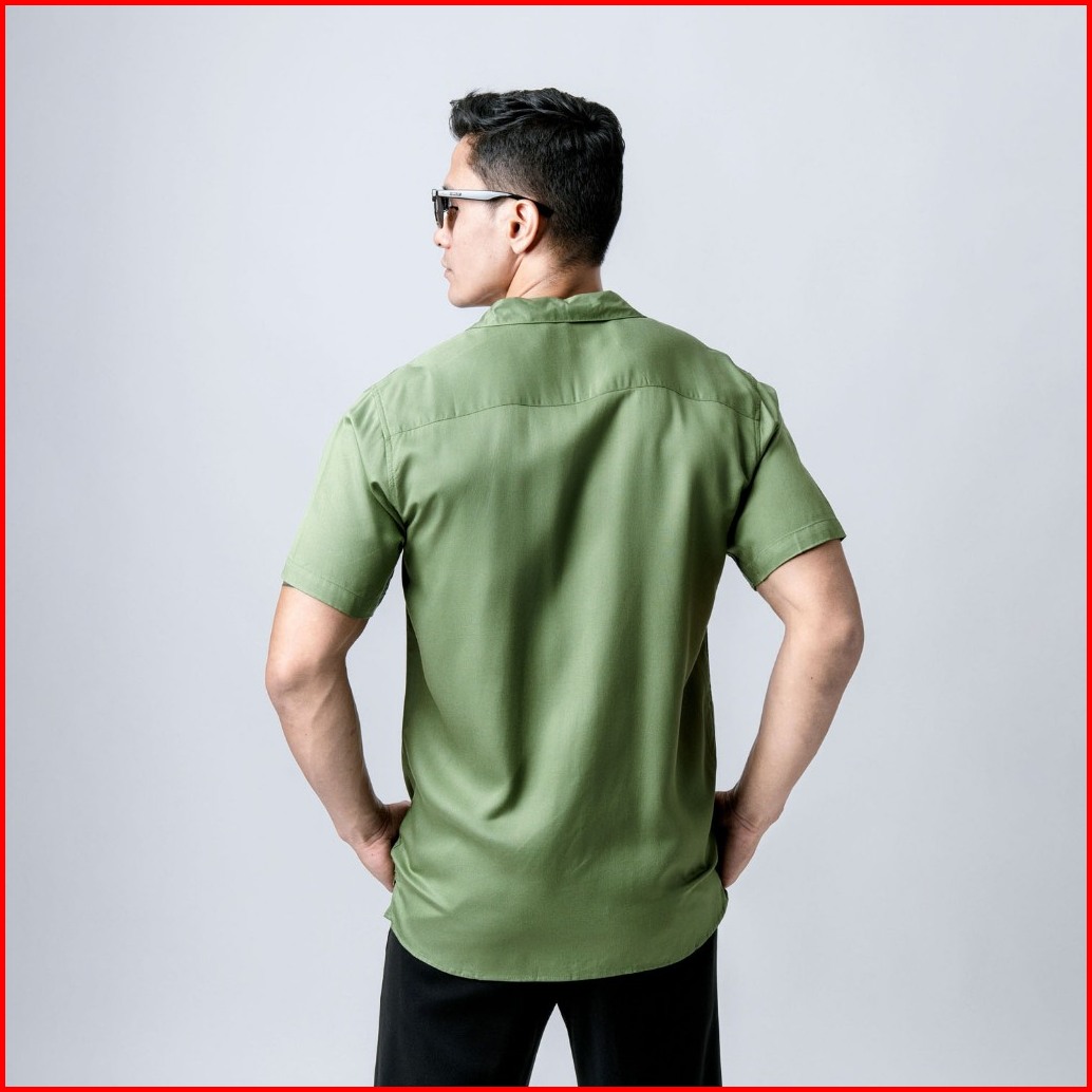 Vengoz Kemeja Pria Pendek Polos Viscose Cuban Shirt - Dark Sage Green
