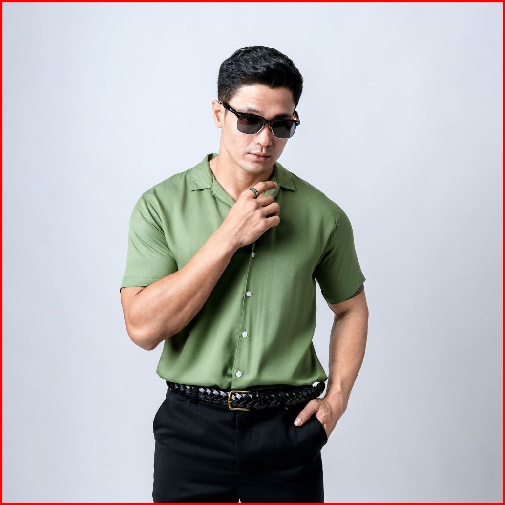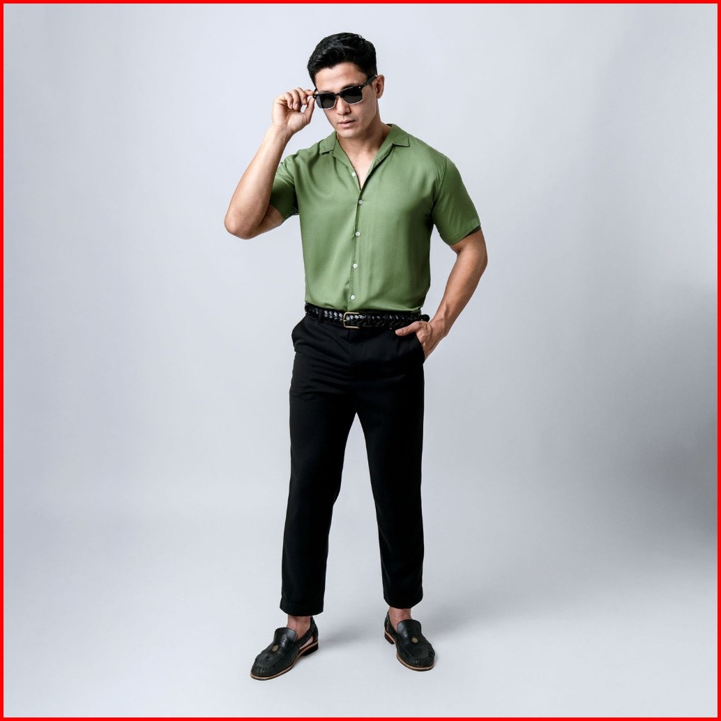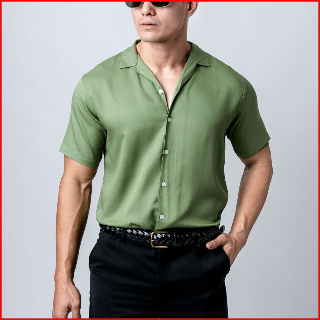 Vengoz Kemeja Pria Pendek Polos Viscose Cuban Shirt - Dark Sage Green