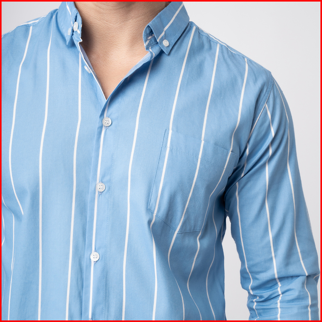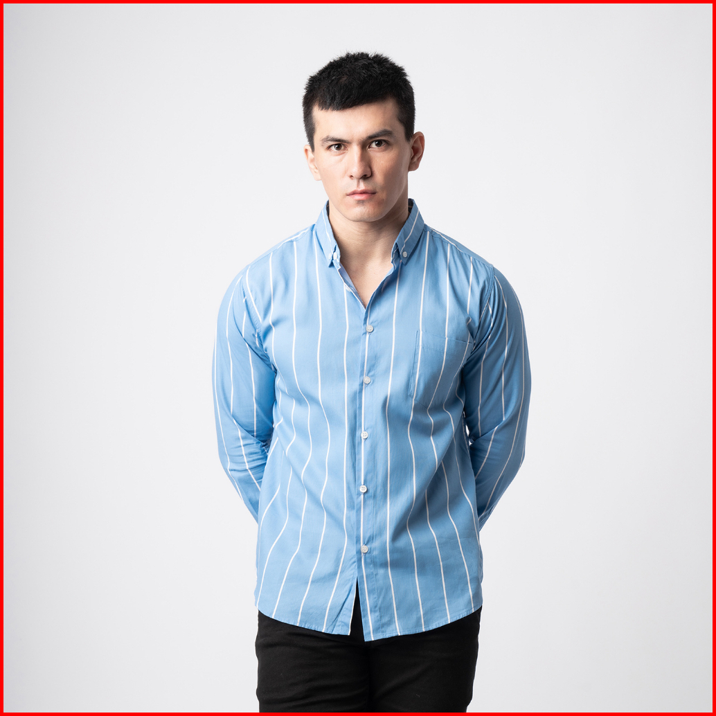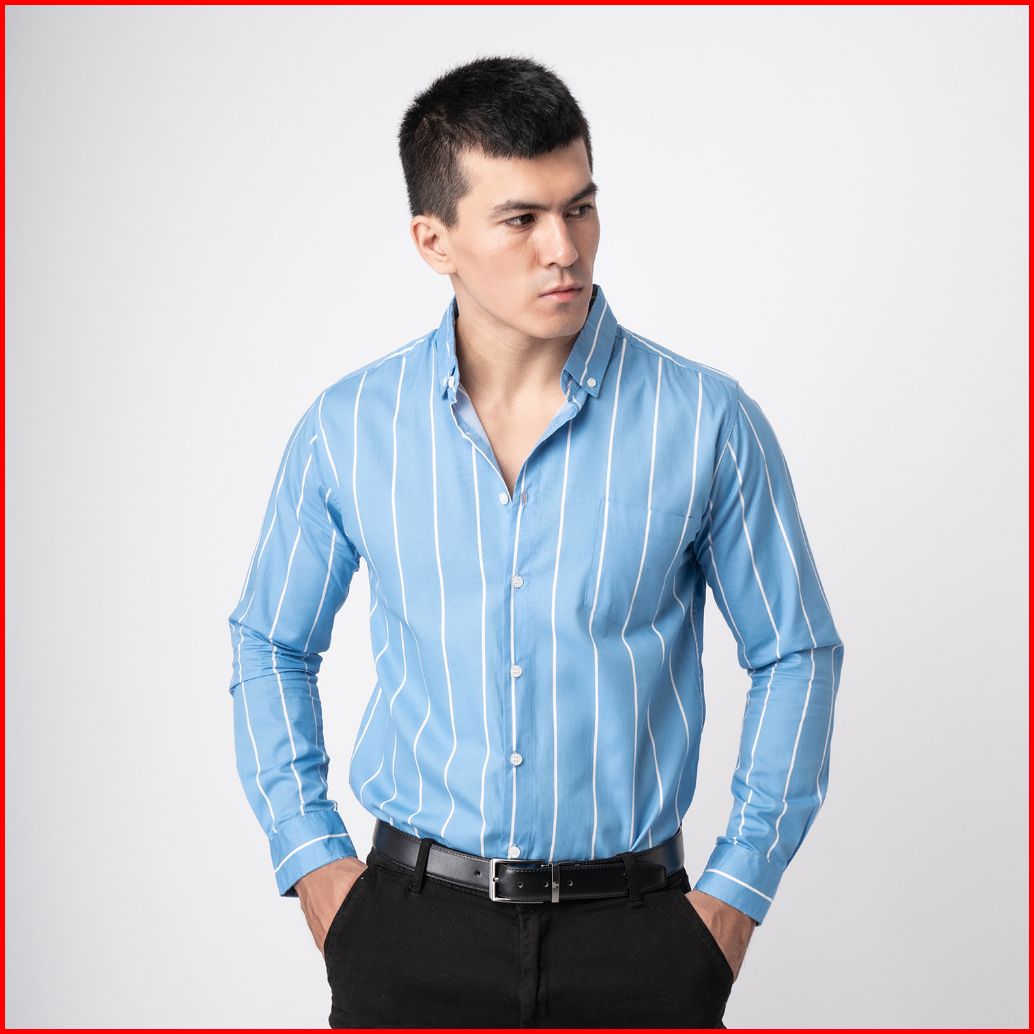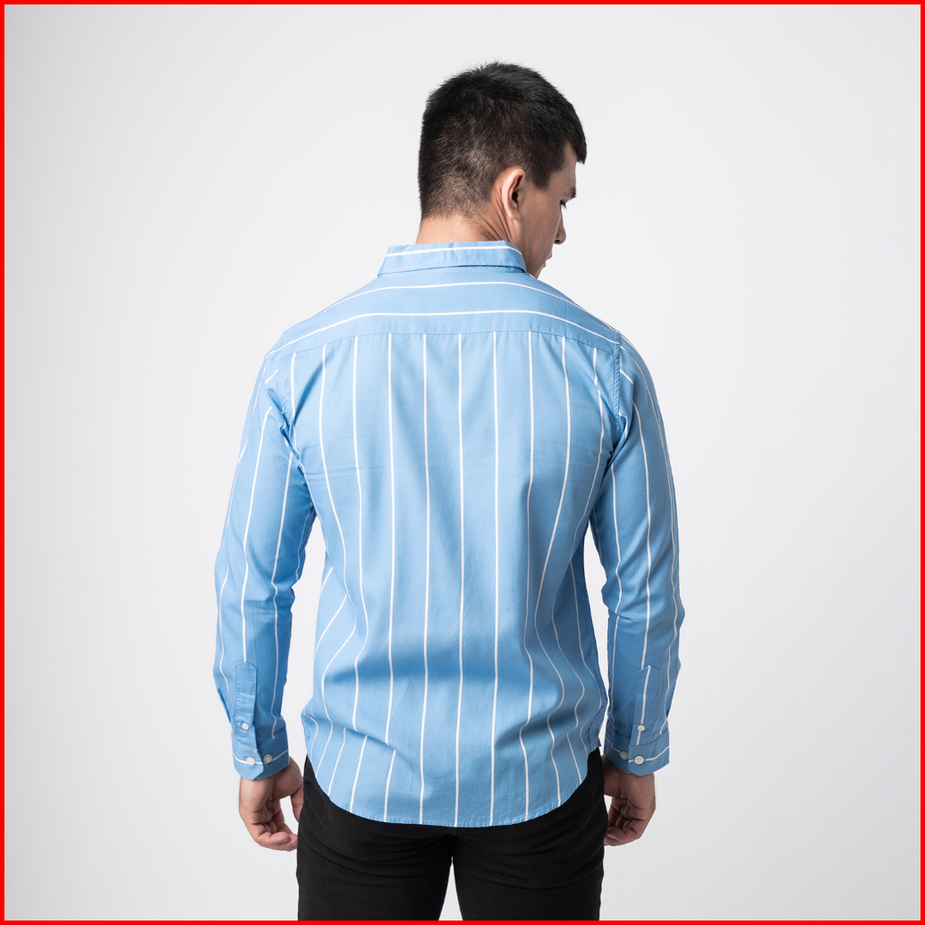 Vengoz Atasan Kemeja Pria Slim Fit - Vicente Stripe Blue Sky Ls