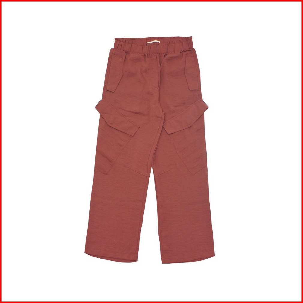 Greenlight Celana Cargo Wanita Polyester Crinkle Long Pants Stretch Waist C070923