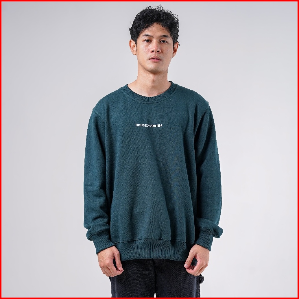 House Of Smith Sweater Crewneck Pria - Doff Dark Green Crewneck