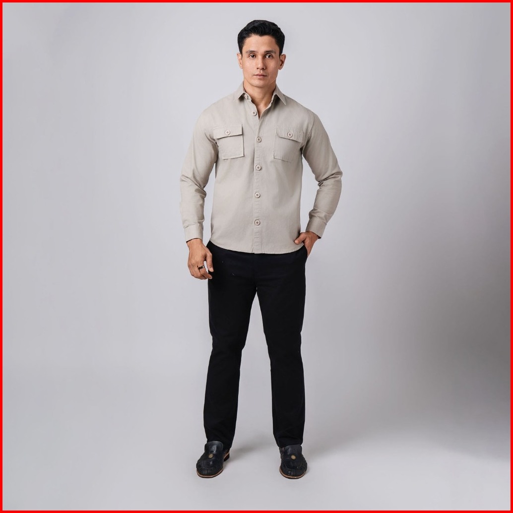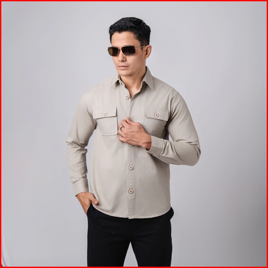 Vengoz - Jacket Shacket Pria Workwear Shirt Light Beige