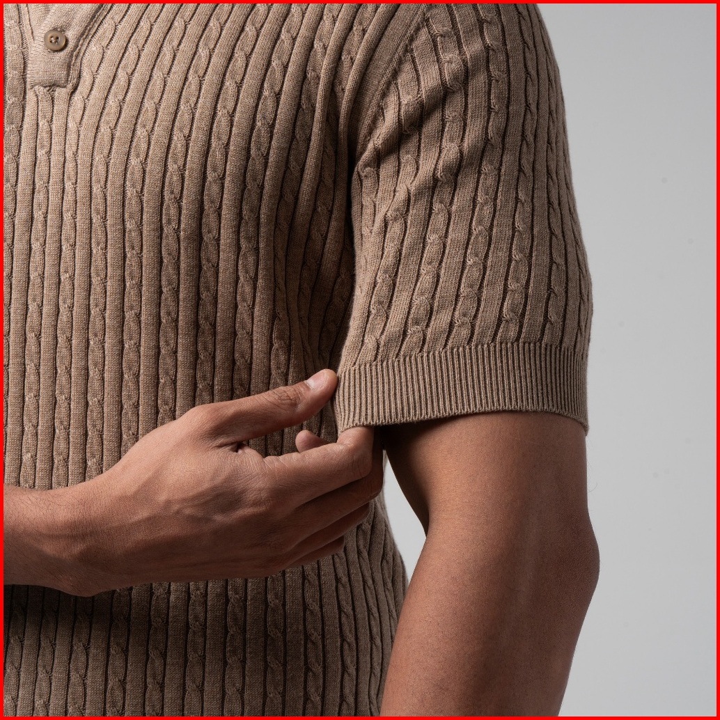Vengoz Polo Shirt Rajut Pria Premium - Mens Cable Knit Cotton Polo Light Brown