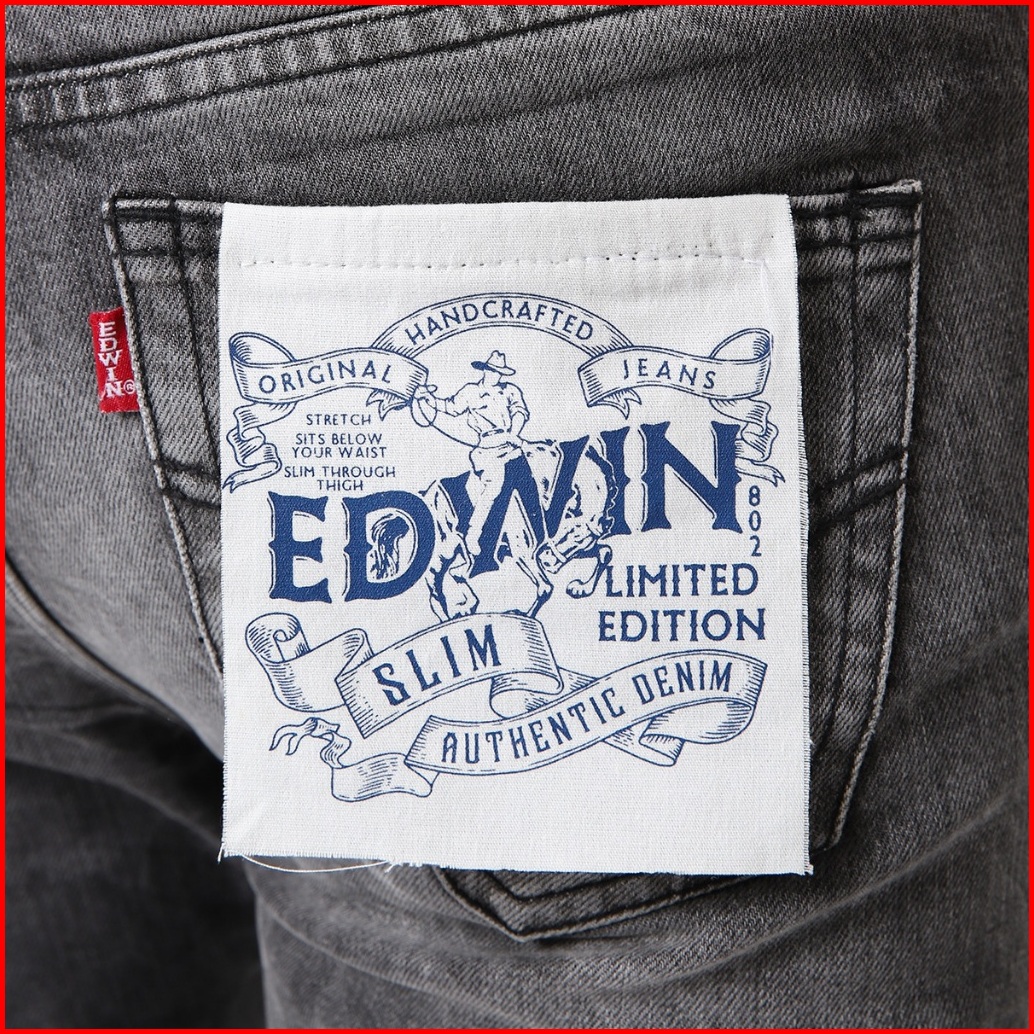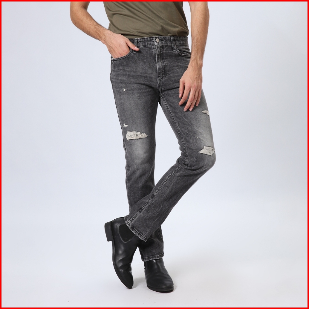 Edwin Jeans - Celana Panjang Denim Pria Slim Fit Stretch Handcrafted Jeans 802 Black Ages Destroy
