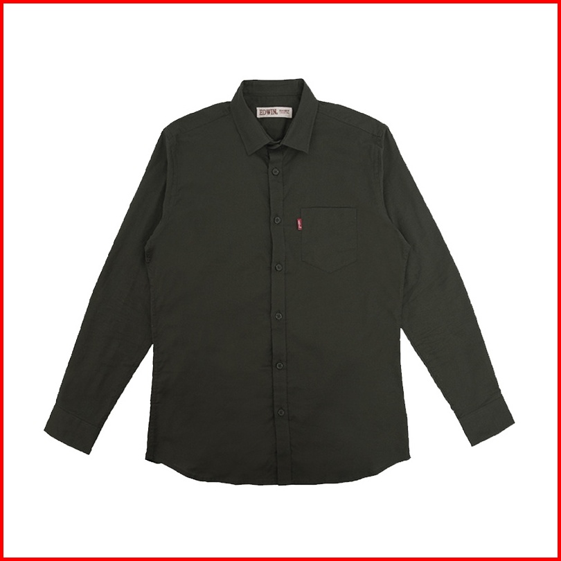 Edwin Jeans - Kemeja Pria Lengan Panjang Comfort Fit Bahan Katun Elmo Green Olive Kemeja Polos Pria