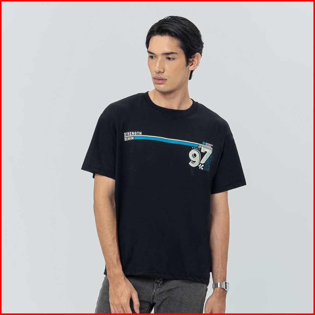 Edwin Jeans - Ninety Jet Black Tshirt Casual Baju Kaos Pria Lengan Pendek Atasan Warna Hitam T-shirt Graphic Tee