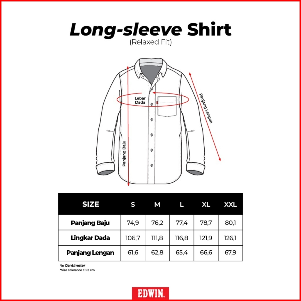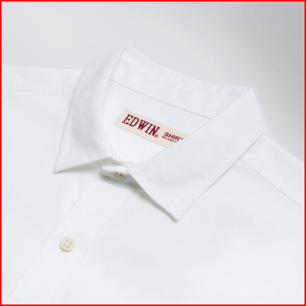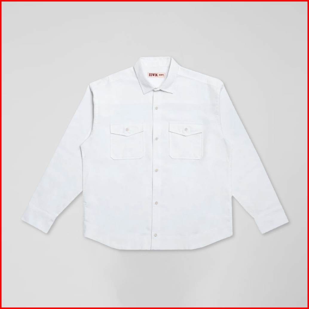 Edwin Jeans - Kemeja Pria Lengan Panjang Relaxed Fit Bahan Katun Jiro White Kemeja Polos Pria