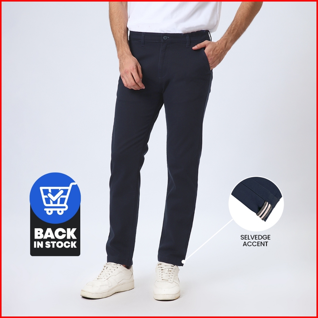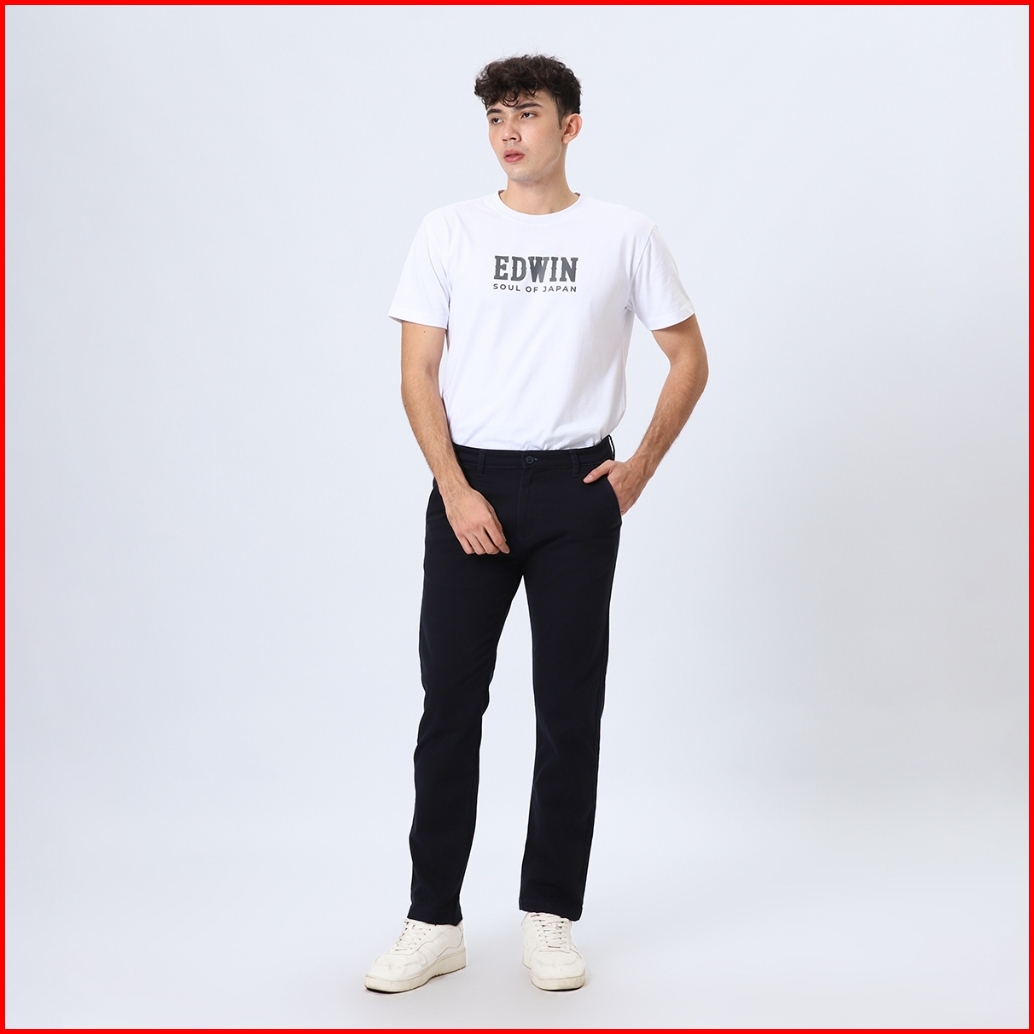 Edwin Jeans - Celana Panjang Chinos Pria Slim Fit Ferando Dark Navy Celana Chino Pria Selvedge Accent