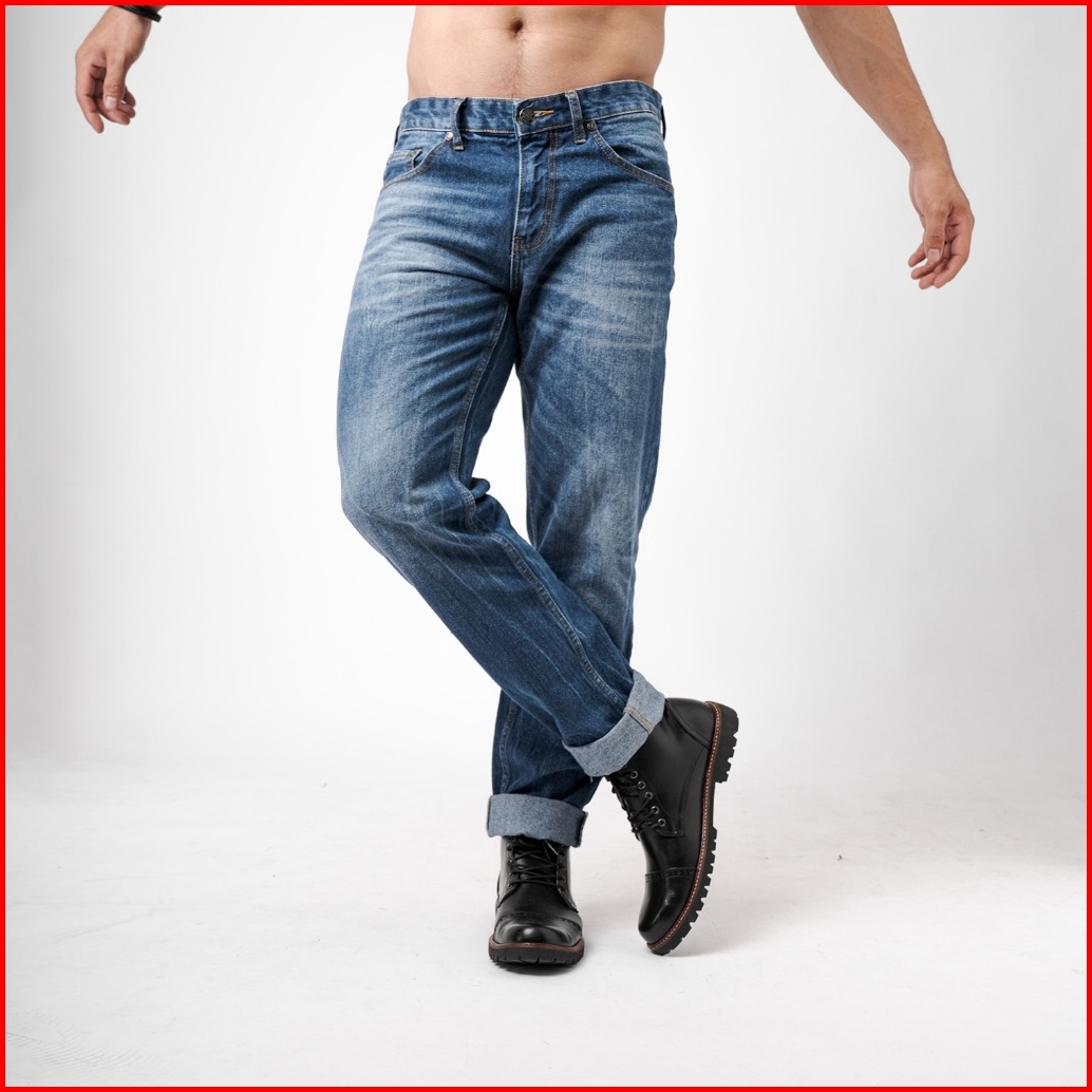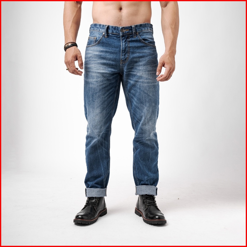 Vengoz Jeans Pria Tapered Fit Premium - Mid Blue Wash