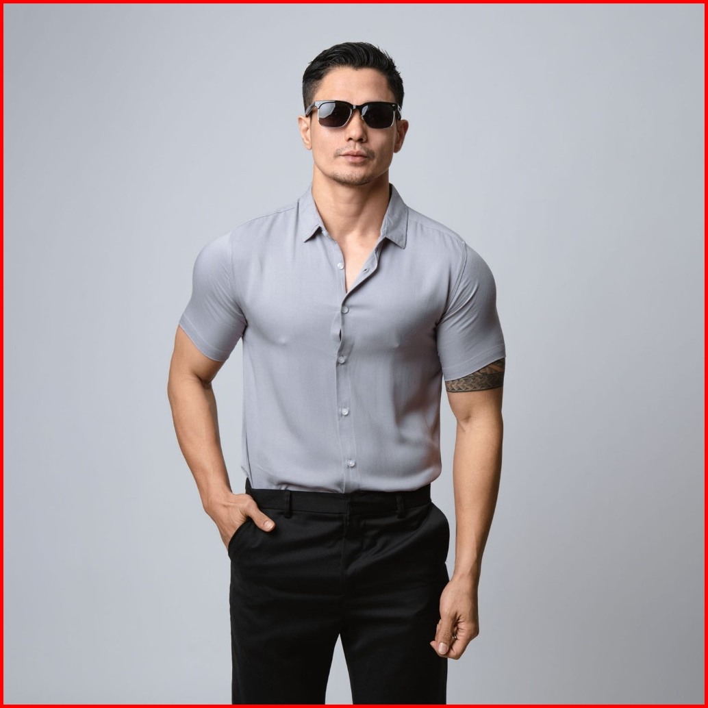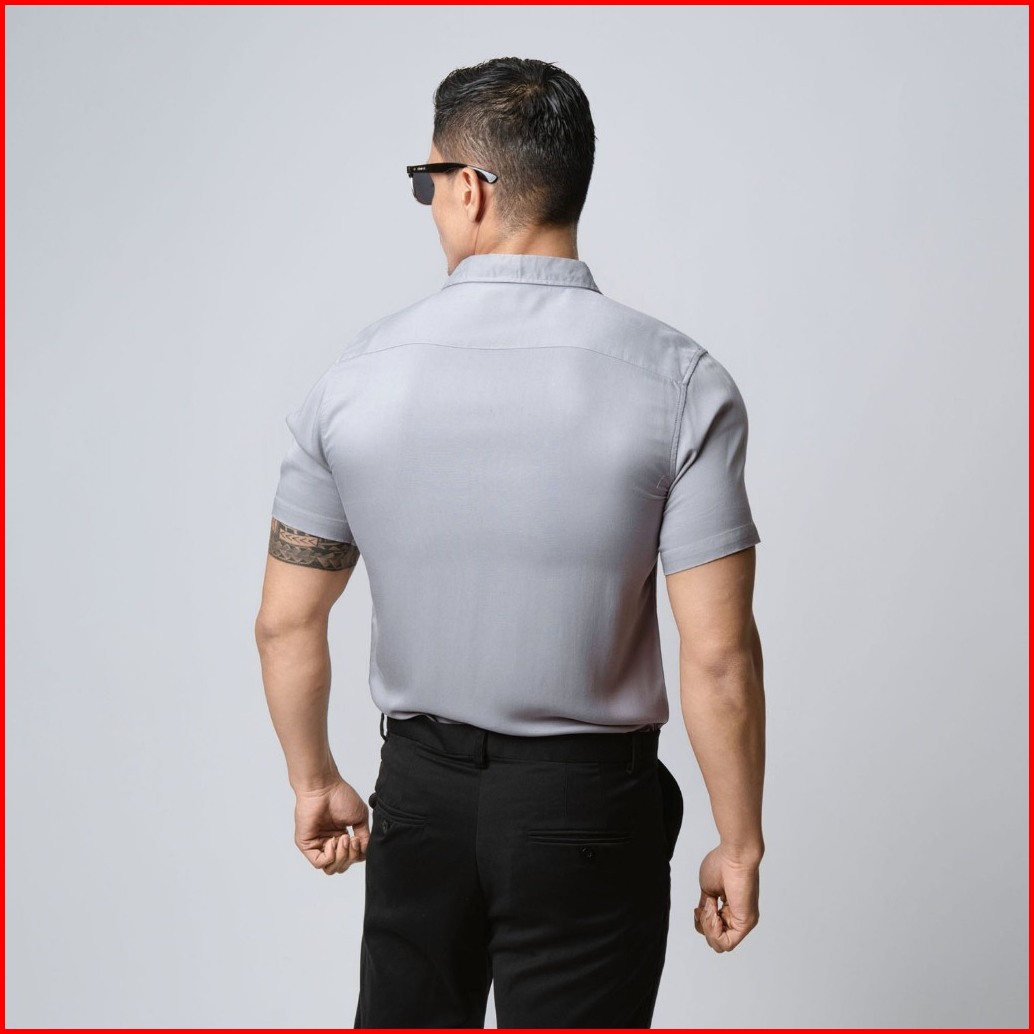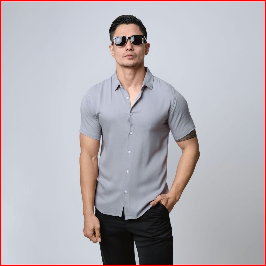 Vengoz Kemeja Pria Pendek Slim Fit - Viscose Light Grey Ss