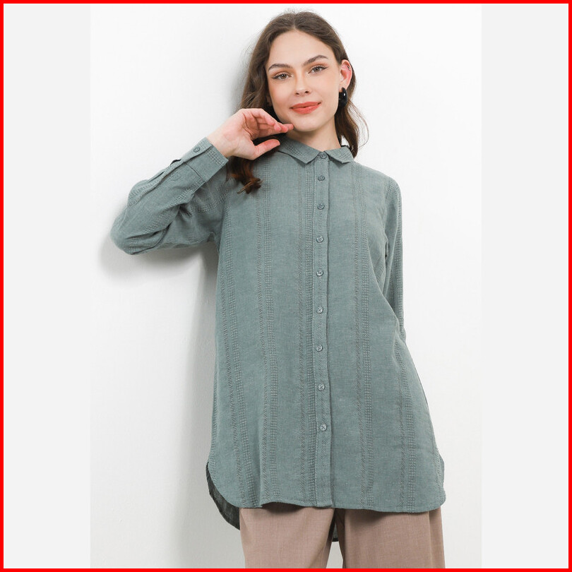 Giordano Long Sleeve Linen Cotton Shirt Wanita