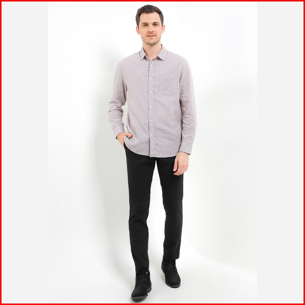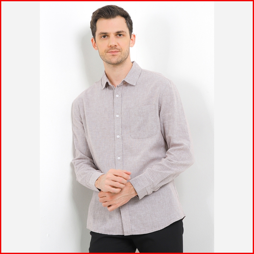 Giordano Long Sleeve Linen Cotton Shirt Pria