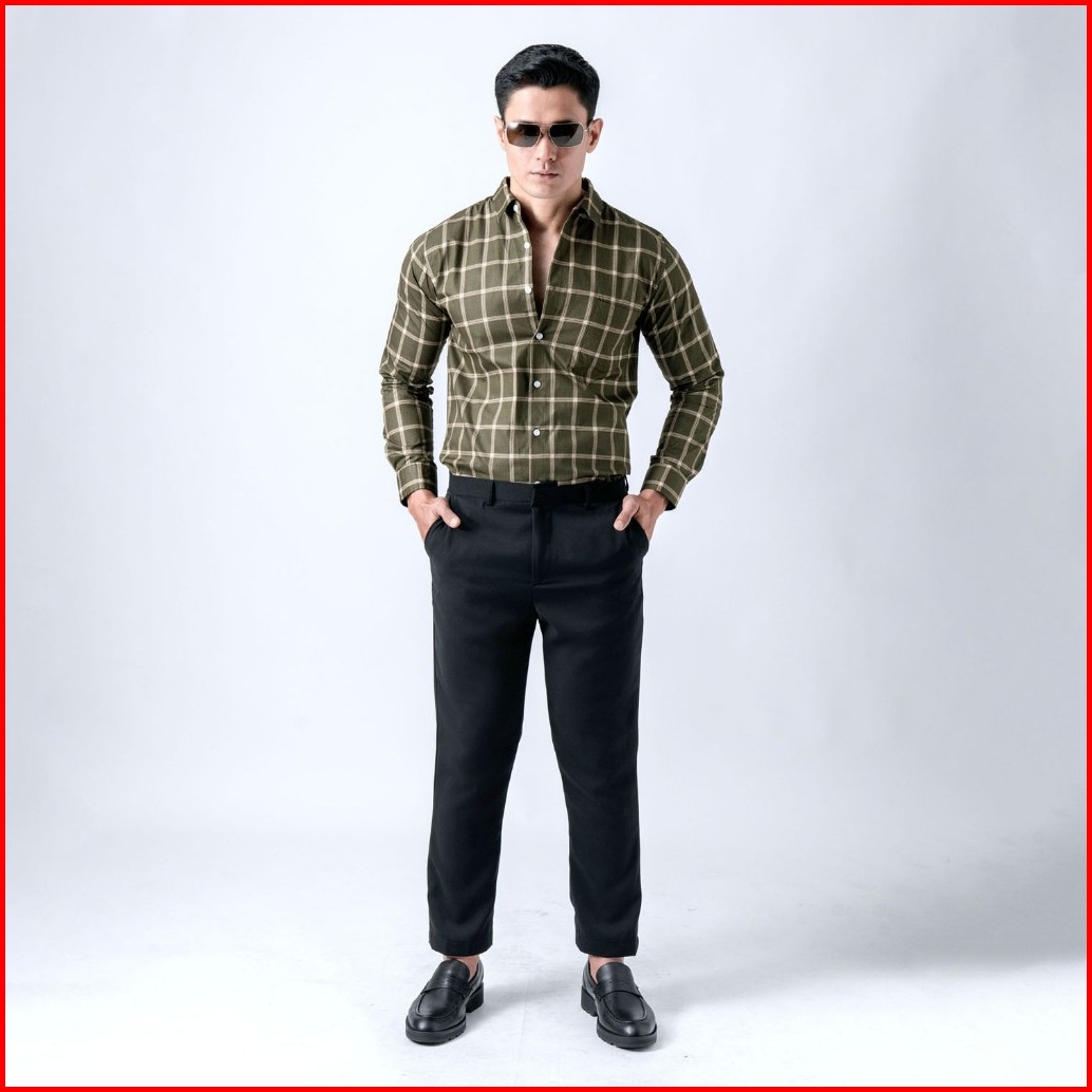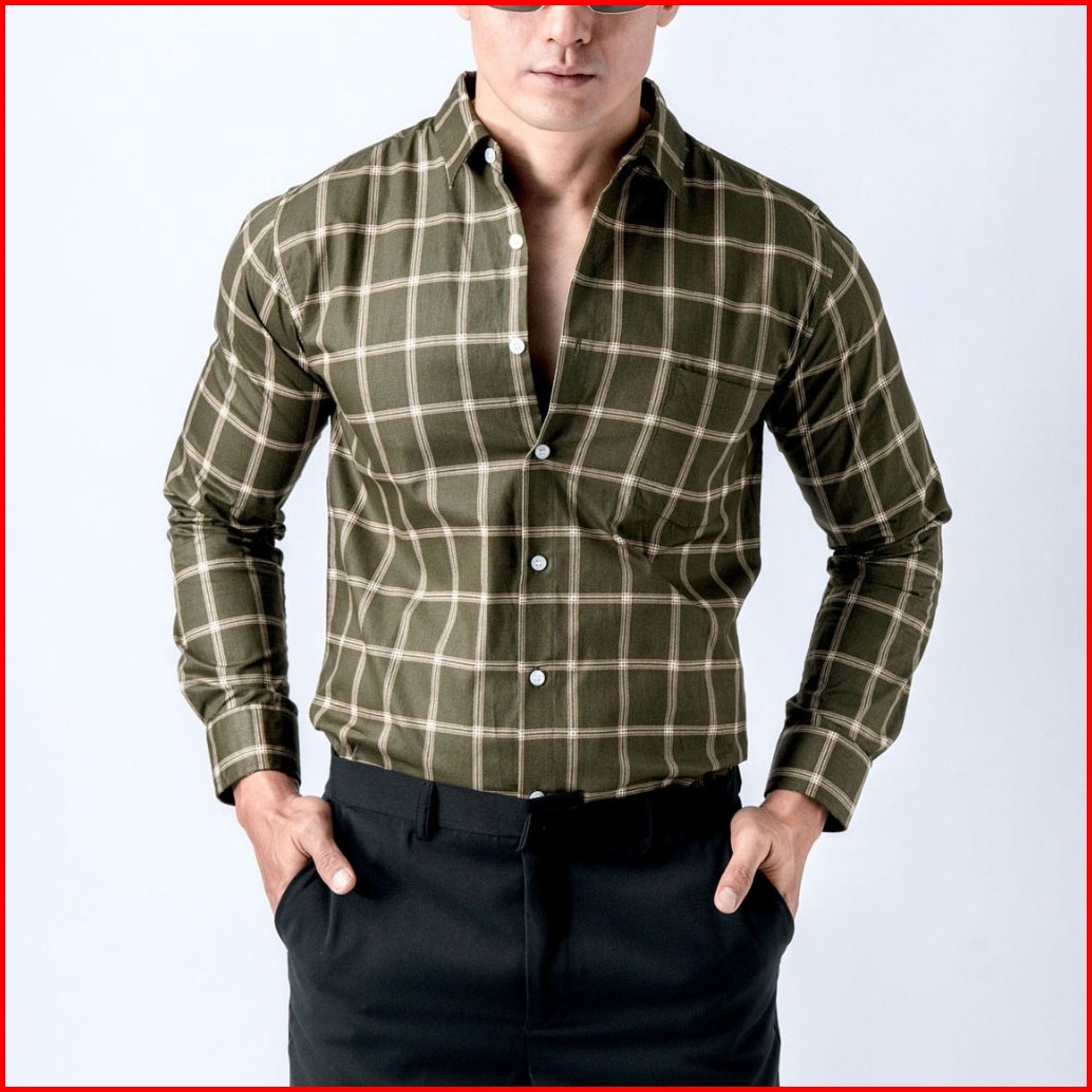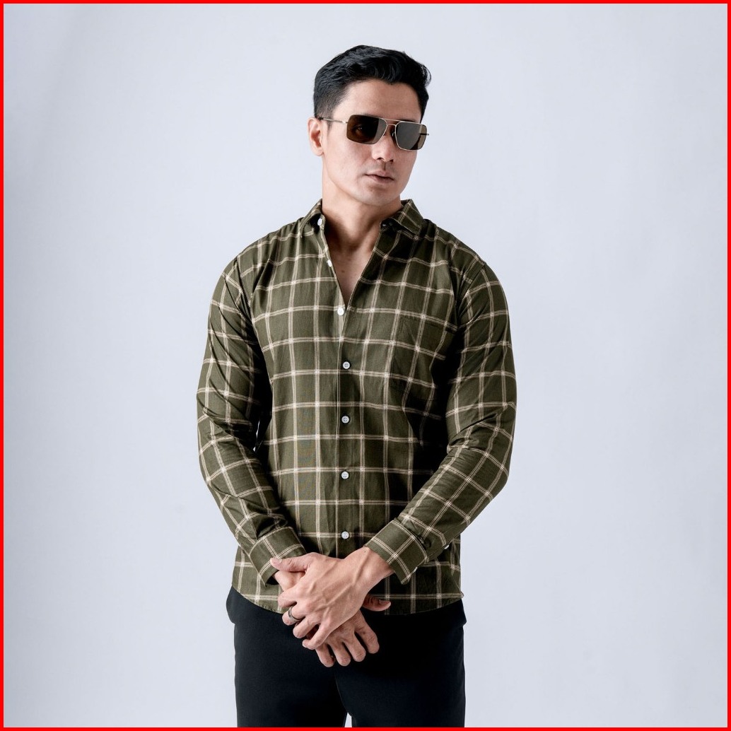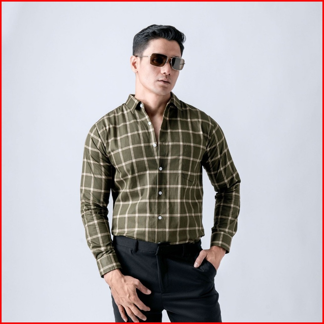 Vengoz Kemeja Pria Slim Fit - Roma Plaid Shirt Dark Green Ls