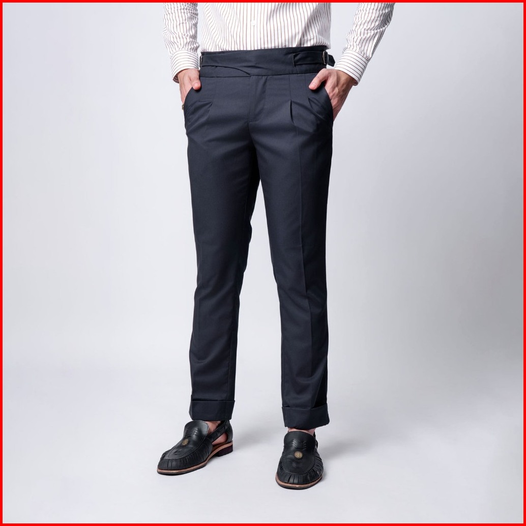 Vengoz - Celana Formal Pria Classic Buckle Gurkha Pants Dark Grey