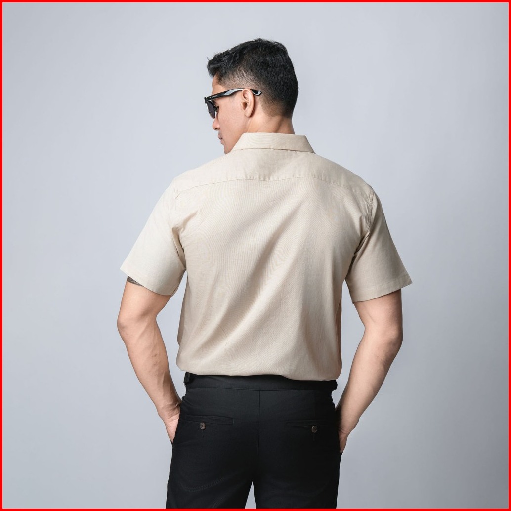 Vengoz Kemeja Pria Basic Rami Linen Look - Light Khaki Ss