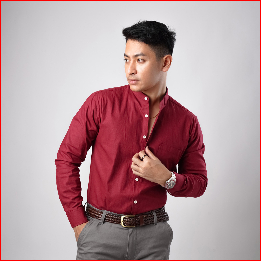 Vengoz Kemeja Oxford Panjang Shanghai Pria Slim Fit - Red Dawn