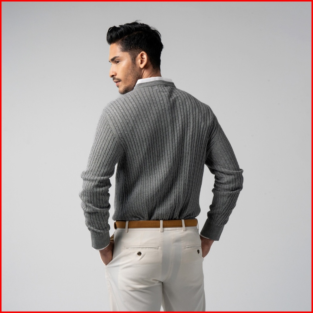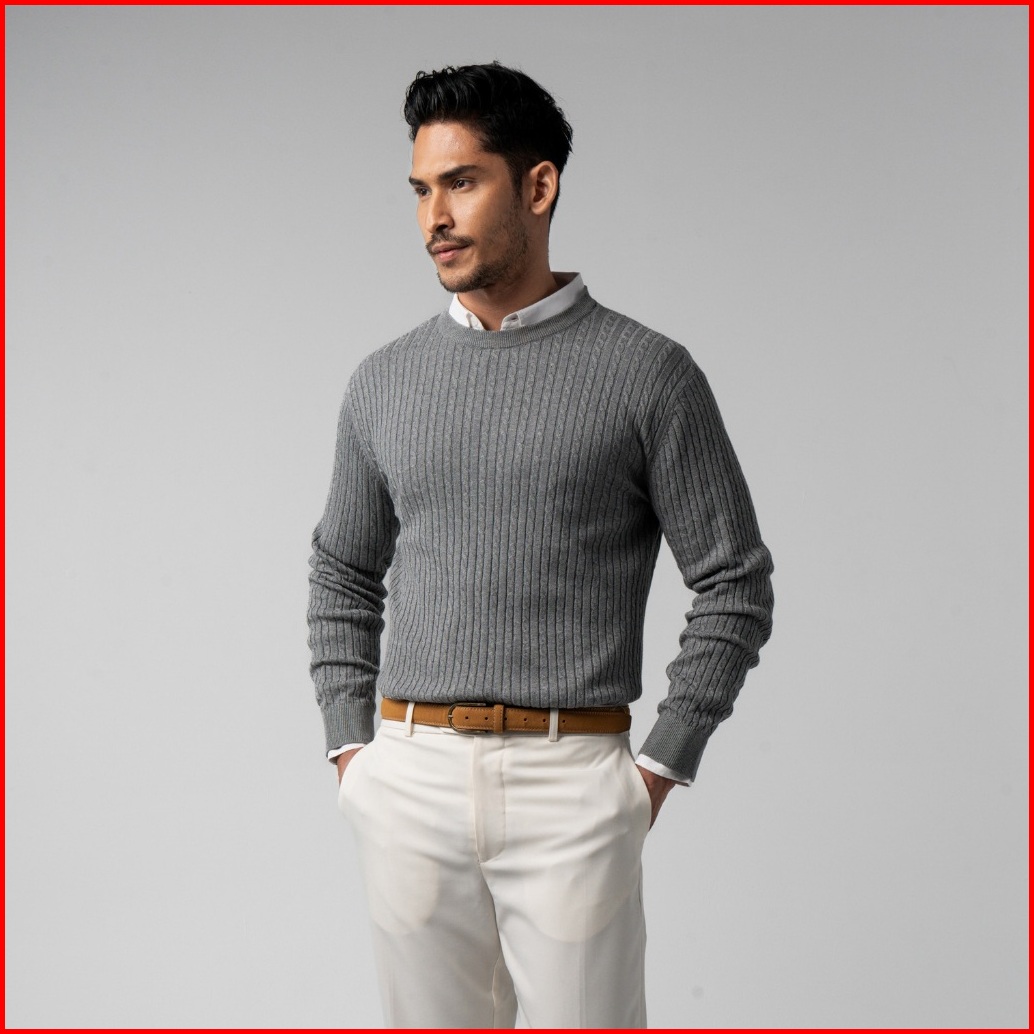 Vengoz Sweater Rajut Pria Premium - Mens Cable Knit Cotton Sweater Grey Ls