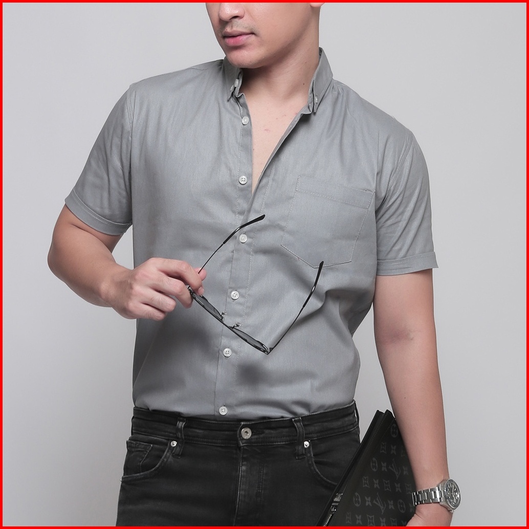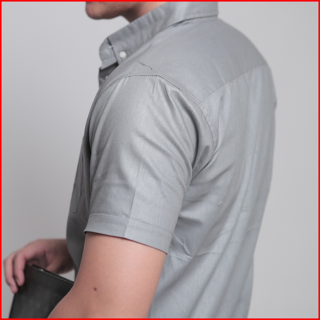 Vengoz Kemeja Oxford Pria Lengan Pendek Slim Fit - Ash Grey