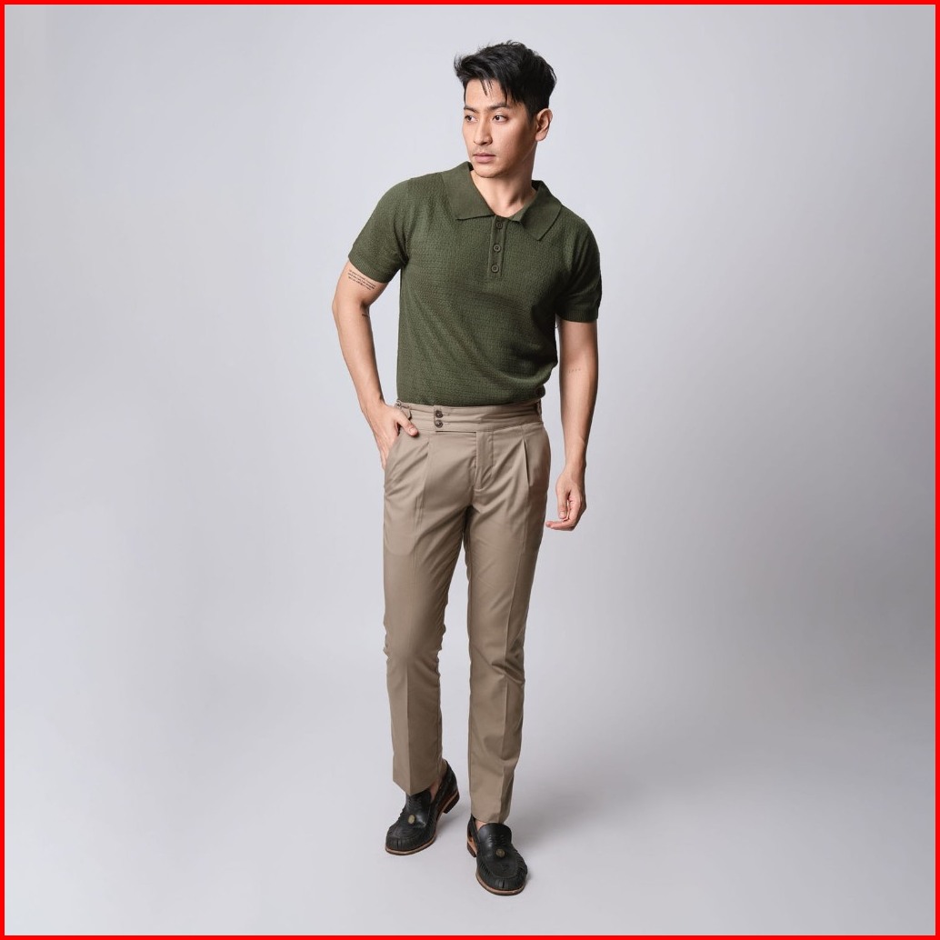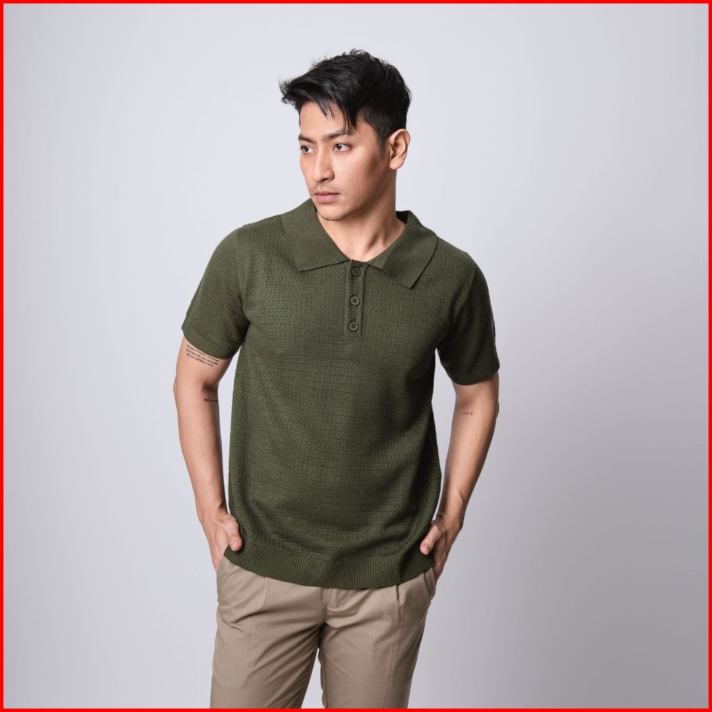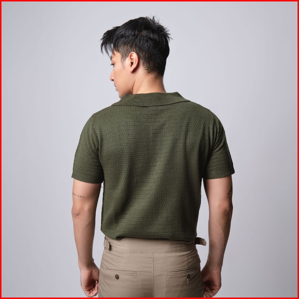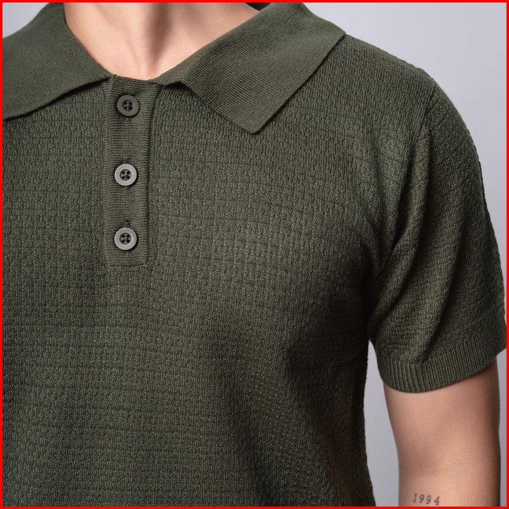 Vengoz Polo Shirt Rajut Pria - Mens Polo Shirts Textured Knitted Army