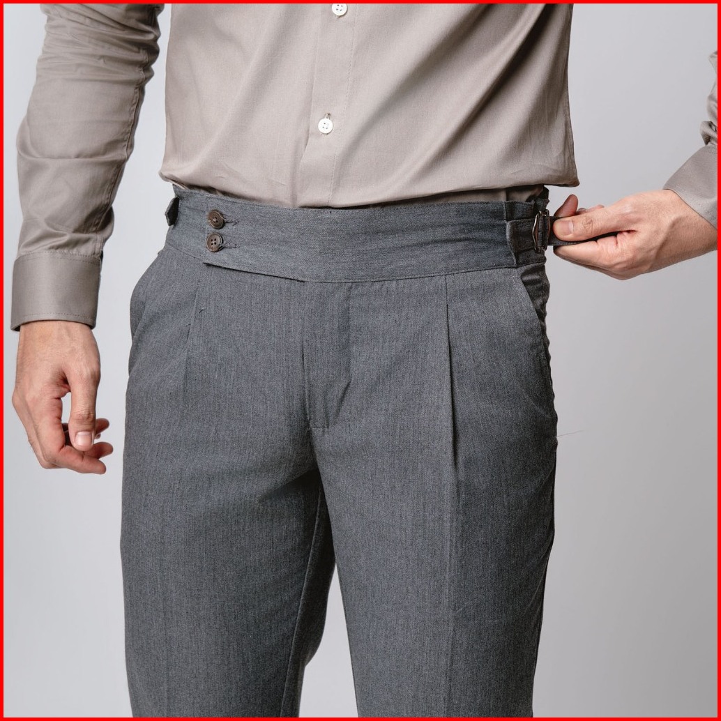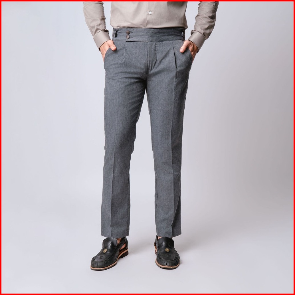Vengoz - Celana Formal Pria Classic Double Button Gurkha Pants Grey