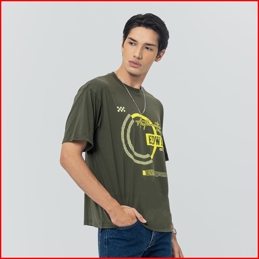 Edwin Jeans - Circle Green Tshirt Casual Baju Kaos Pria Lengan Pendek Atasan Warna Army T-shirt Graphic Tee