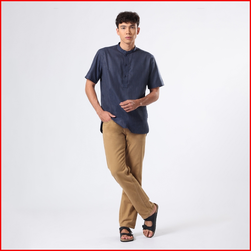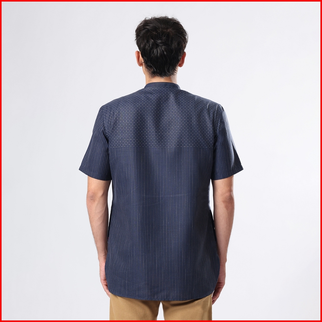 Edwin Jeans - Kemeja Koko Pria Lengan Pendek Husein Dark Navy Baju Muslim Pria