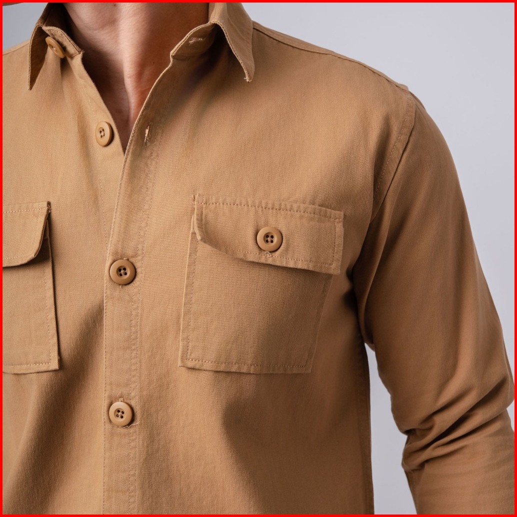 Vengoz - Jacket Shacket Pria Workwear Shirt Camel Brown