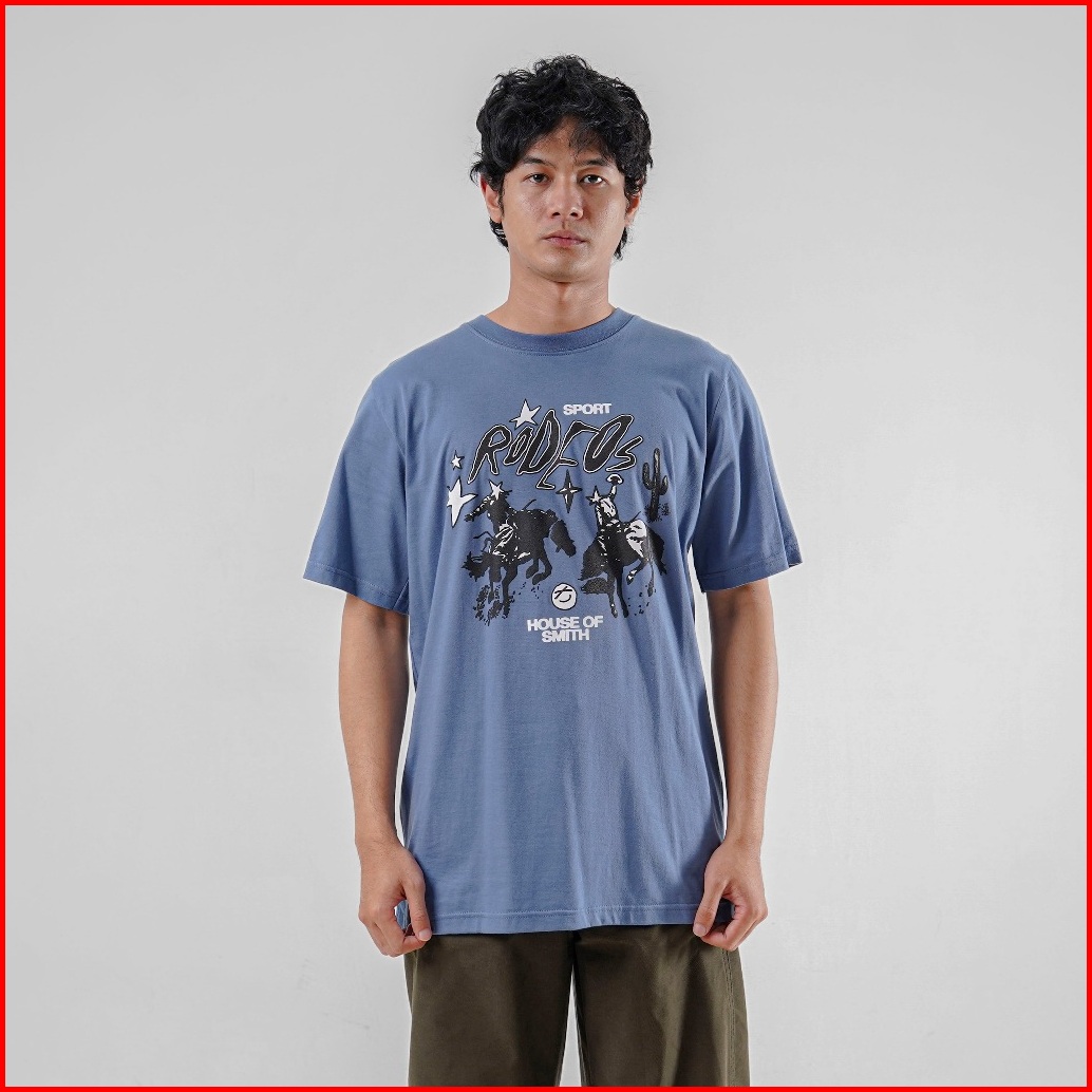 House Of Smith Kaos Pria Lengan Pendek - Rodeos Tshirt Mineral Blue - T Shirt