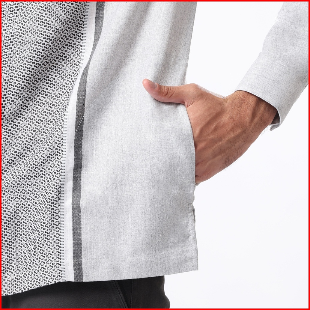 Edwin Jeans - Kemeja Koko Pria Lengan Panjang Ghazali Grey Baju Muslim Pria