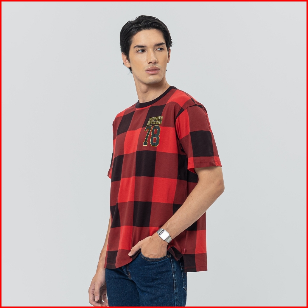 Edwin Jeans - Mike Red Black Tshirt Casual Baju Kaos Pria Lengan Pendek Atasan Warna Merah Putih T-shirt Graphic Tee
